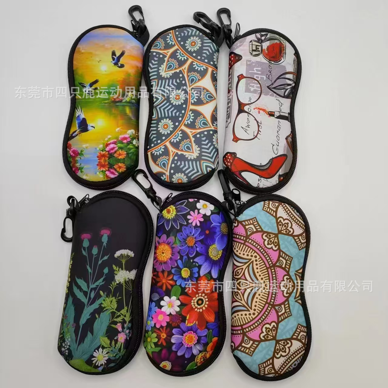 跨境新潜水料眼镜包收纳袋太阳眼镜墨镜拉链包防摔便捷印花眼镜袋