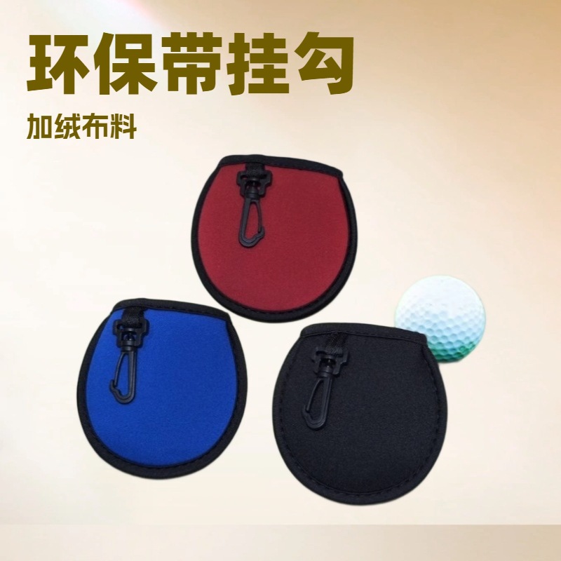 フック付きの環境に優しいゴルフカバー、ベルベット裏地付き、ダイビング素材、ゴルフボール保護カバー、ボールバッグ