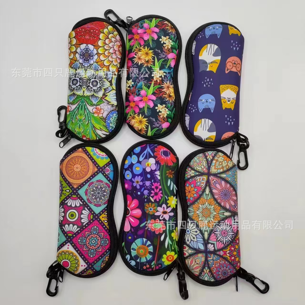 爆款热销潜水料眼镜包时尚印花眼镜袋旅行便携挂钩太阳眼睛盒