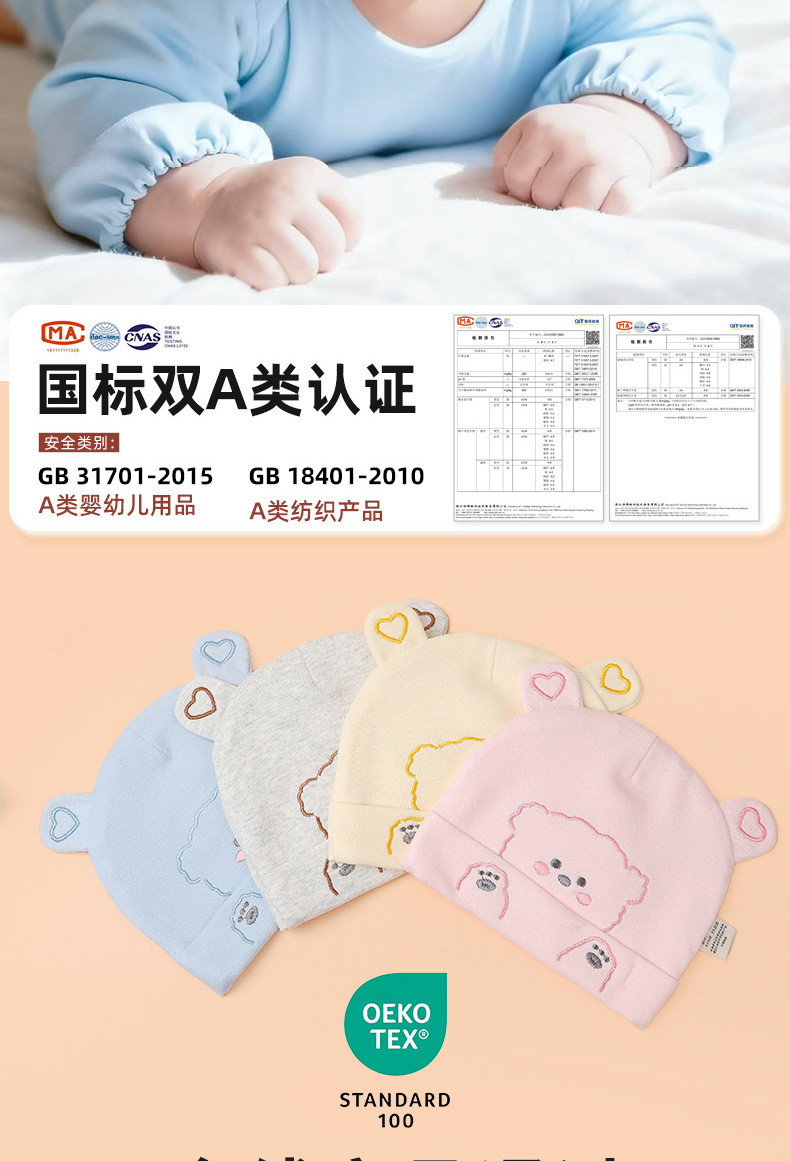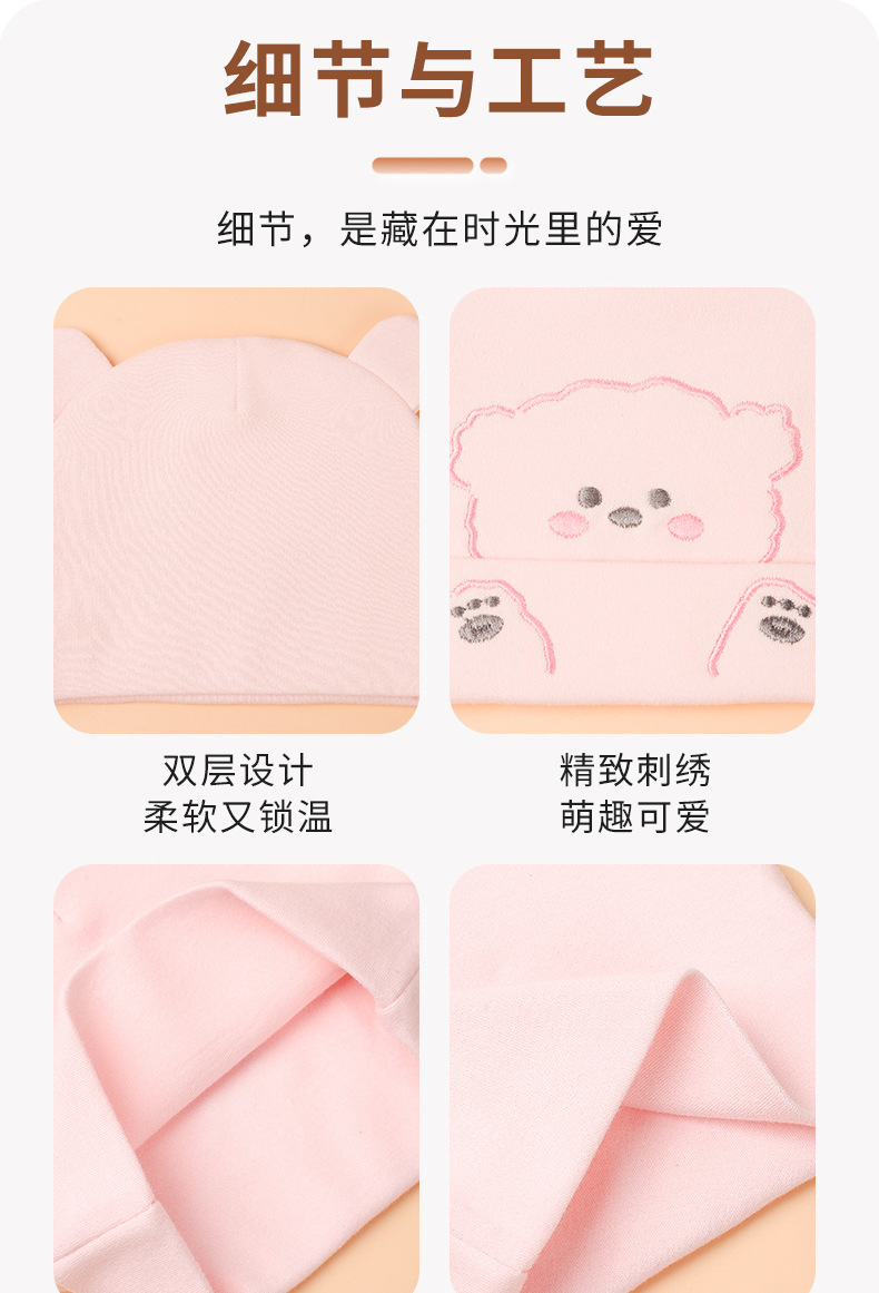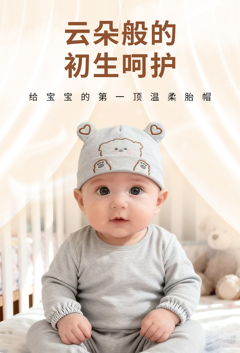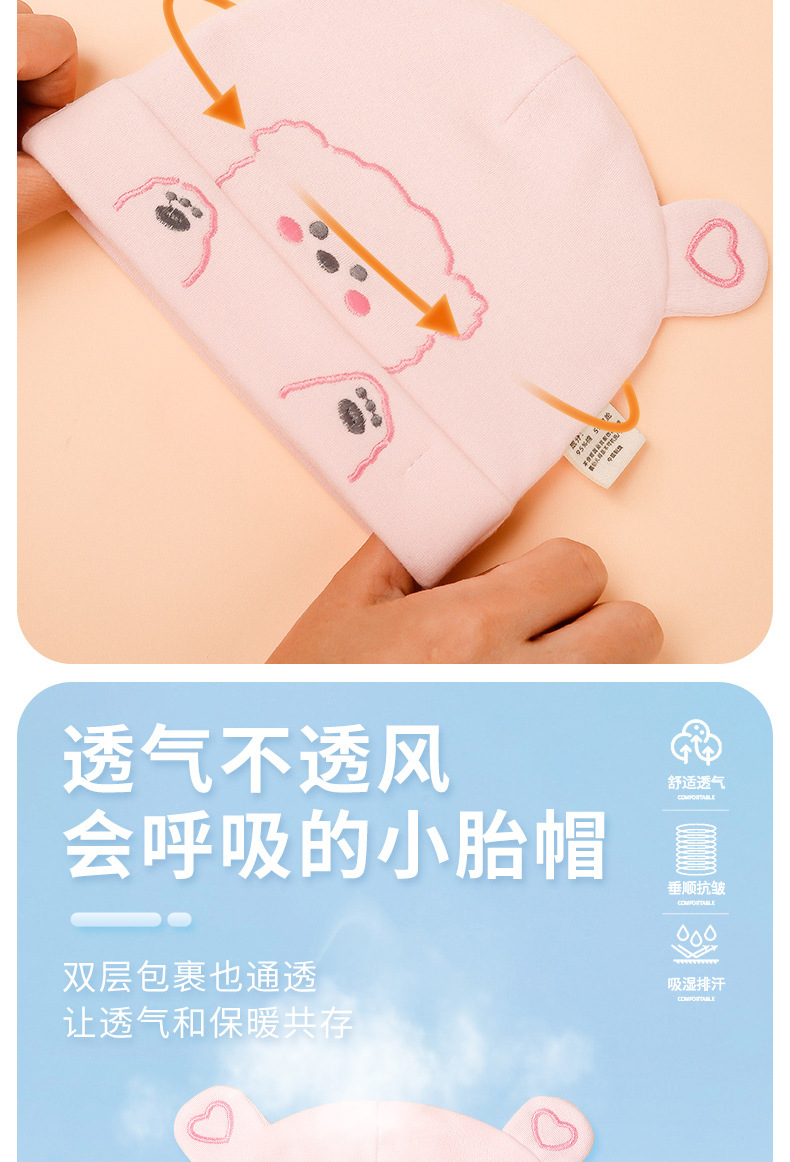 宝宝帽子秋冬双层加厚新生儿胎帽纯棉无骨A类婴幼儿护囟门帽批发