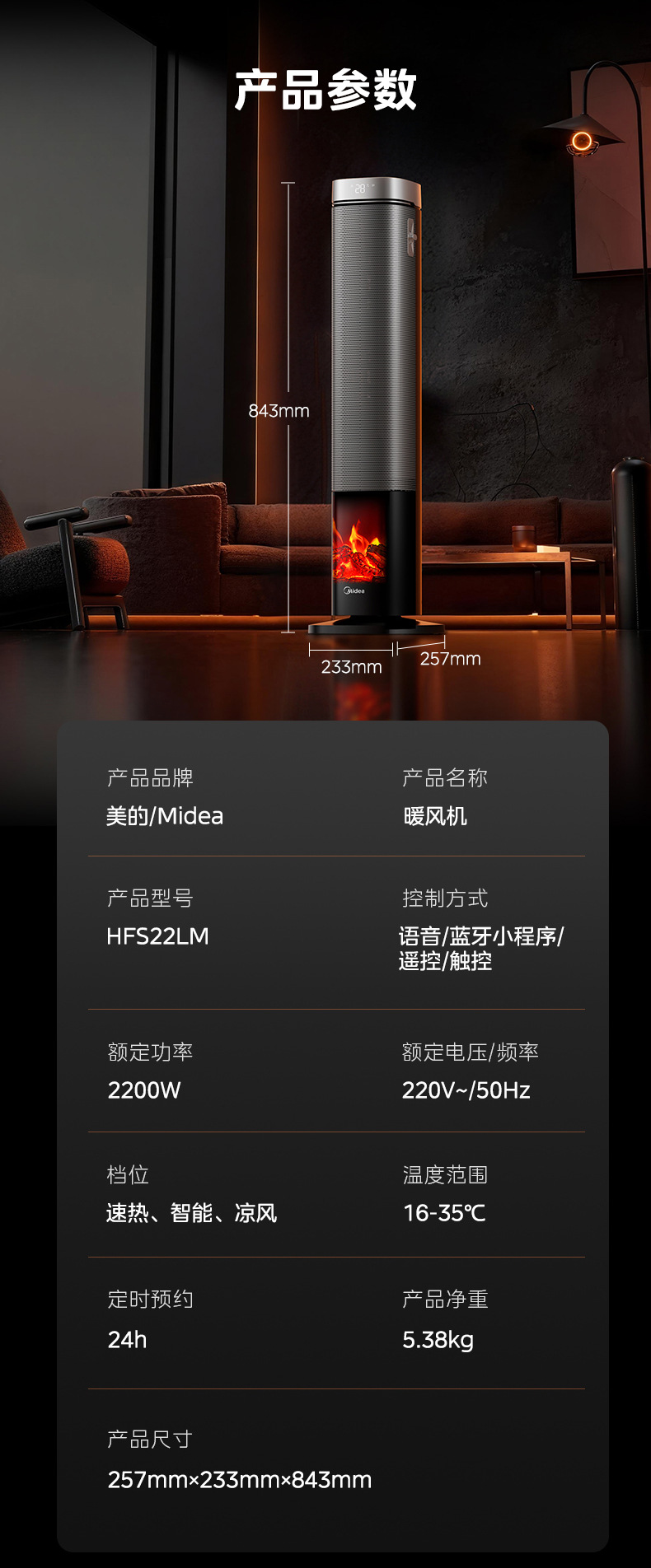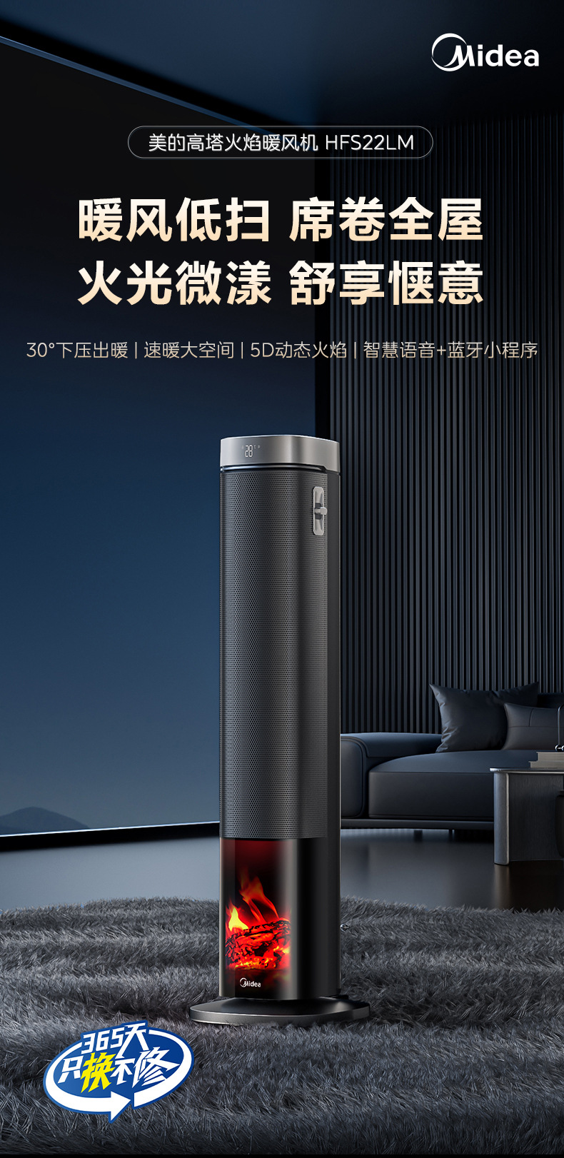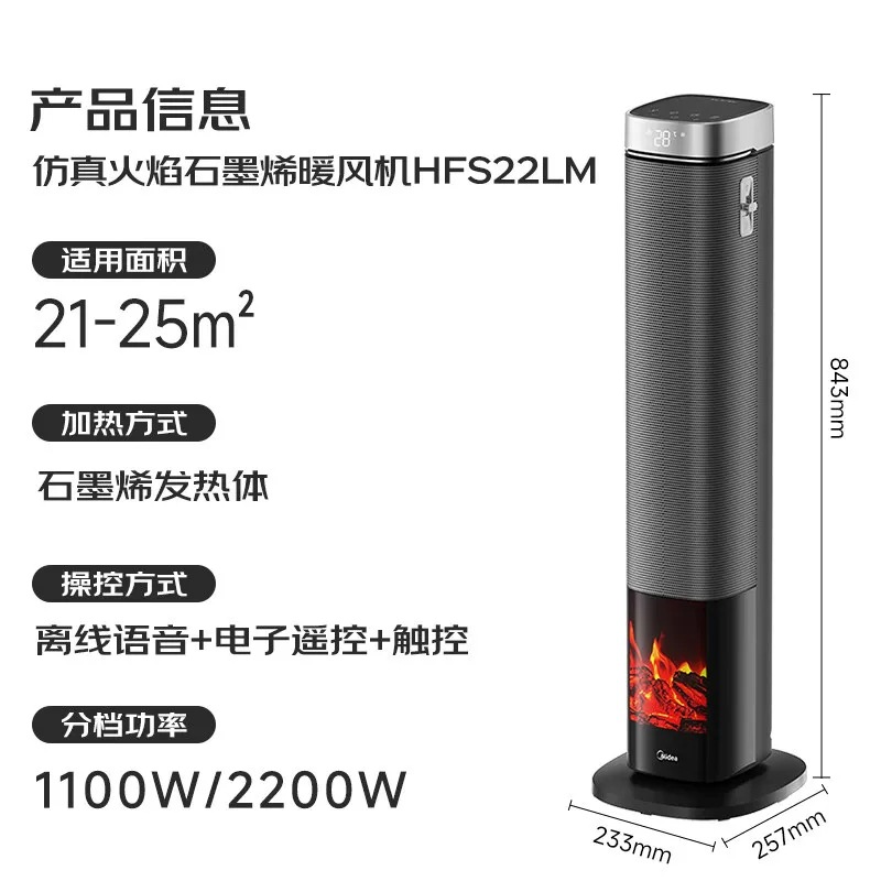 美的暖风机取暖器家用2025新款火焰塔大面积语音石墨烯电HFS22LM