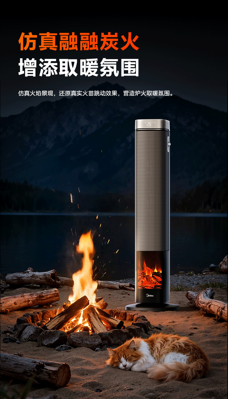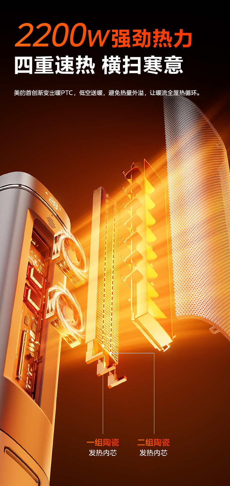 美的暖风机取暖器家用2025新款火焰塔大面积语音石墨烯电暖气神器