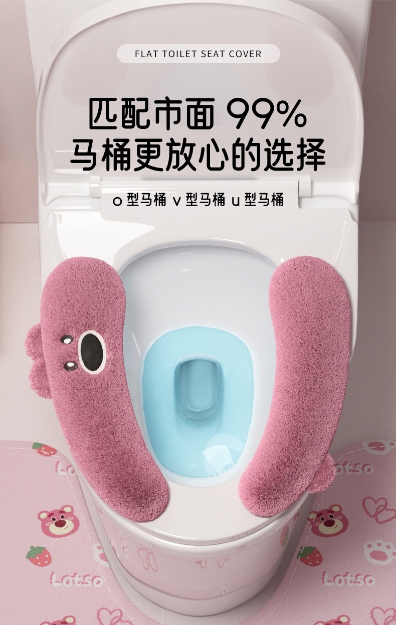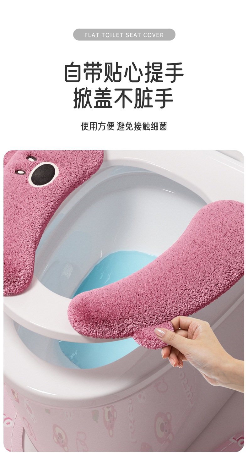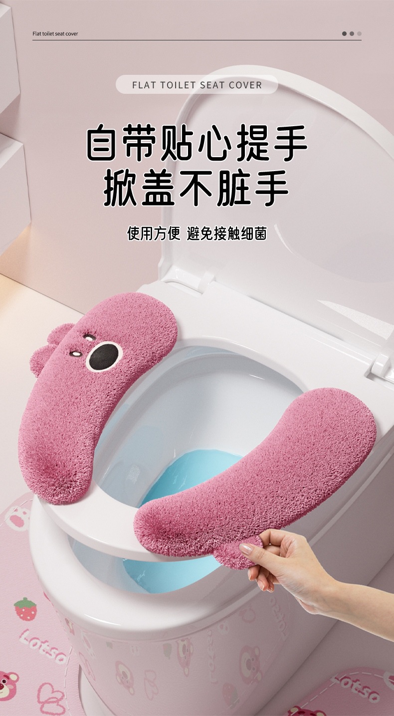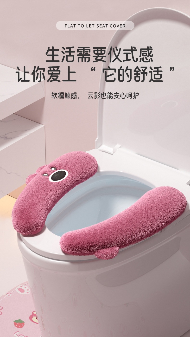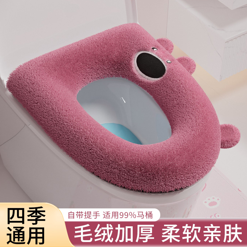 トイレマット冬 2025 新しい防水トイレガスケット粘着ぬいぐるみ家庭用便座秋と冬肥厚