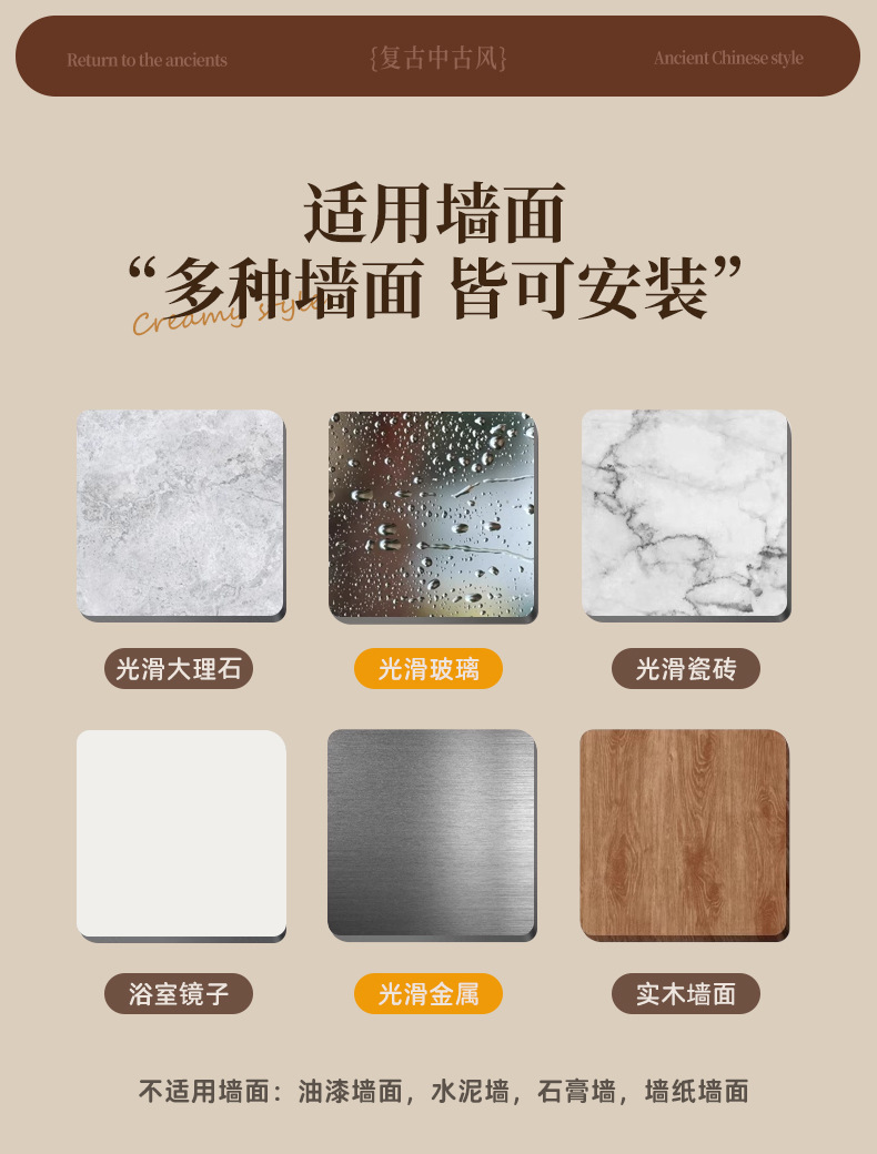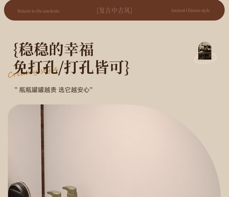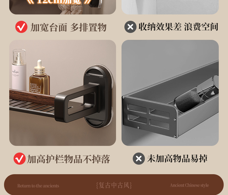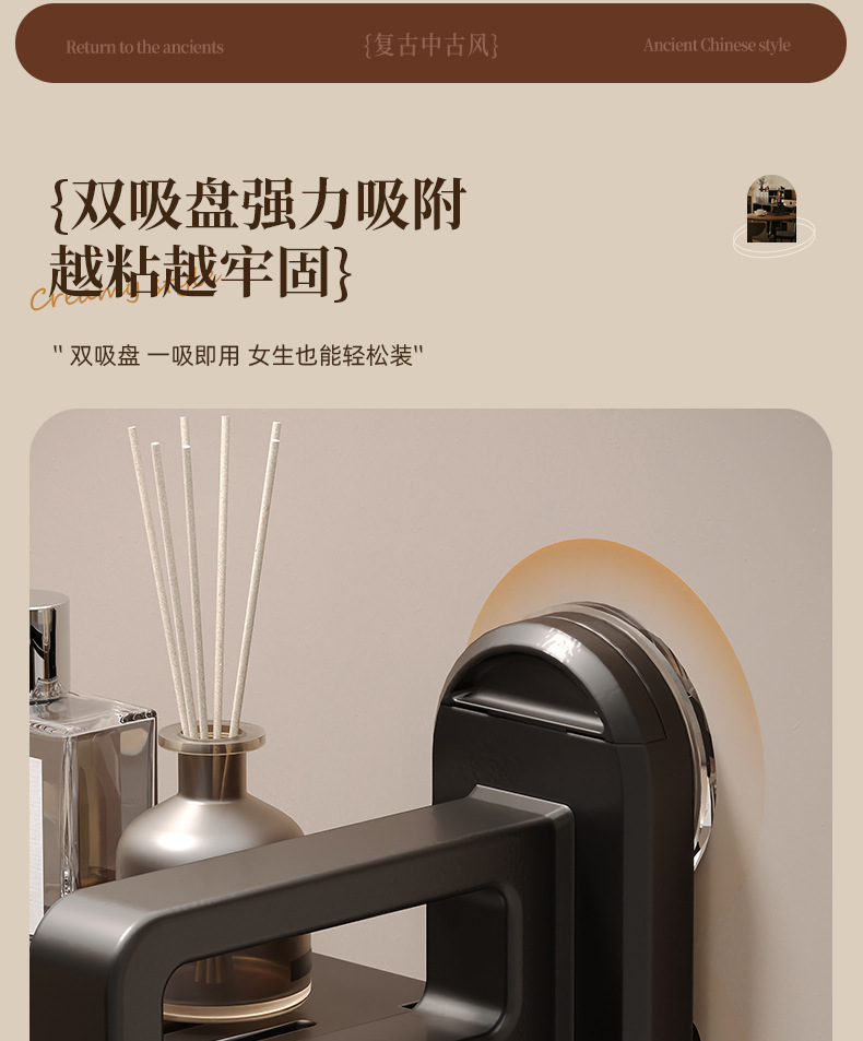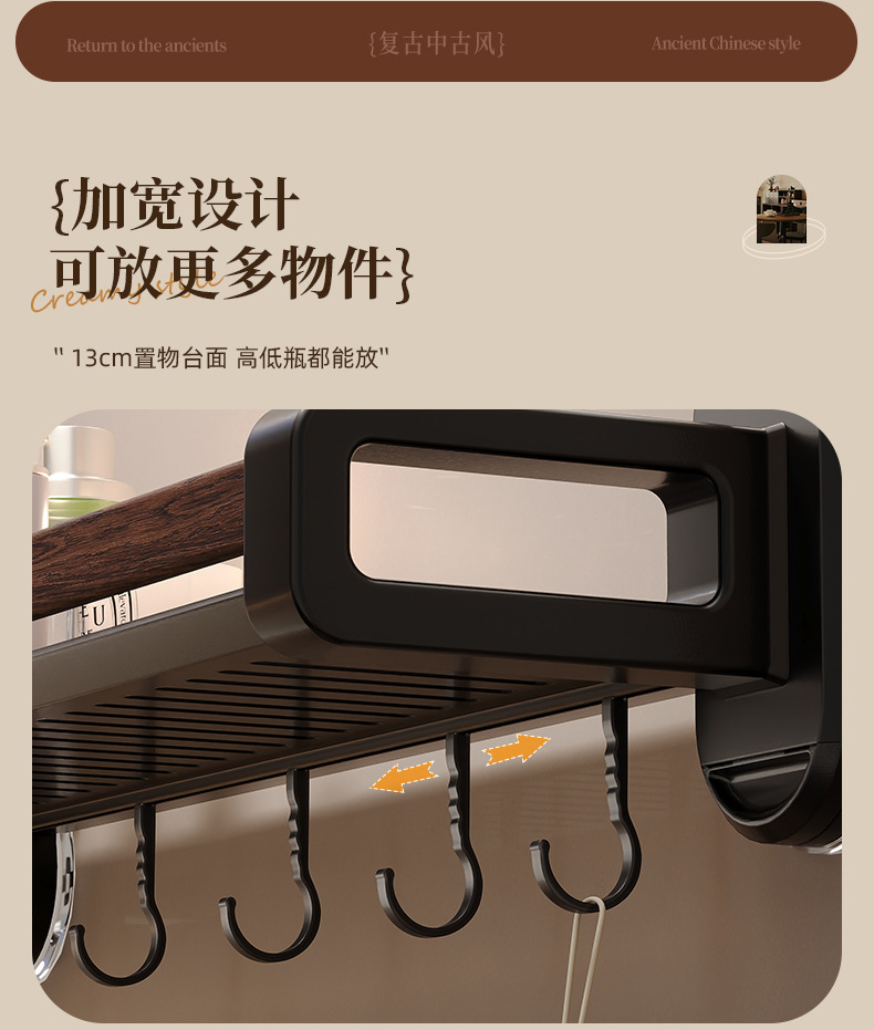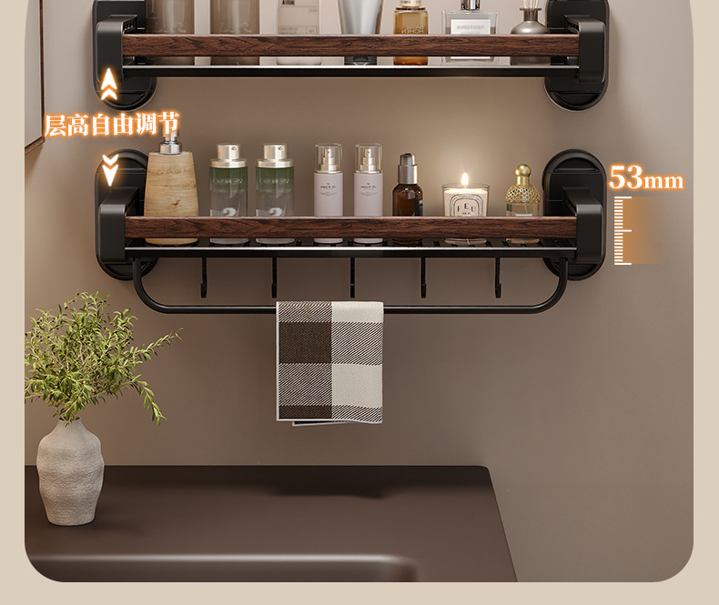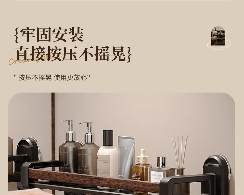 胡桃木卫生间置物架中古风浴室厕所洗手台壁挂墙上吸盘免打孔挂架