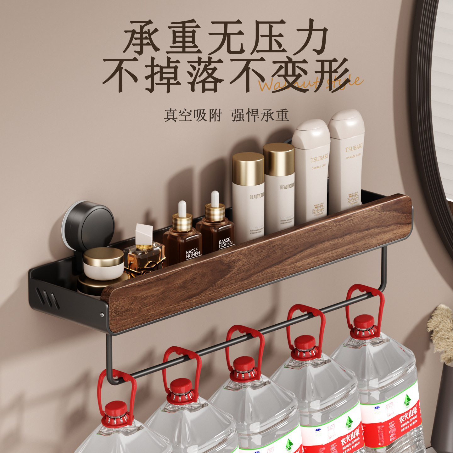 胡桃木新款双吸盘厨房置物架多功能免打孔壁挂墙上调料品收纳架子