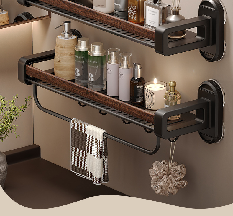 吸盤胡桃木タオル棚の中古風穴なし壁掛けトイレタオル円環浴室バスタオル掛け棚