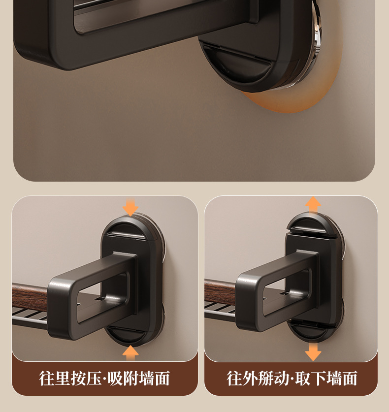 胡桃木吸盘毛巾架免打孔卫生间高端置物架浴室厕所壁挂式浴巾挂架