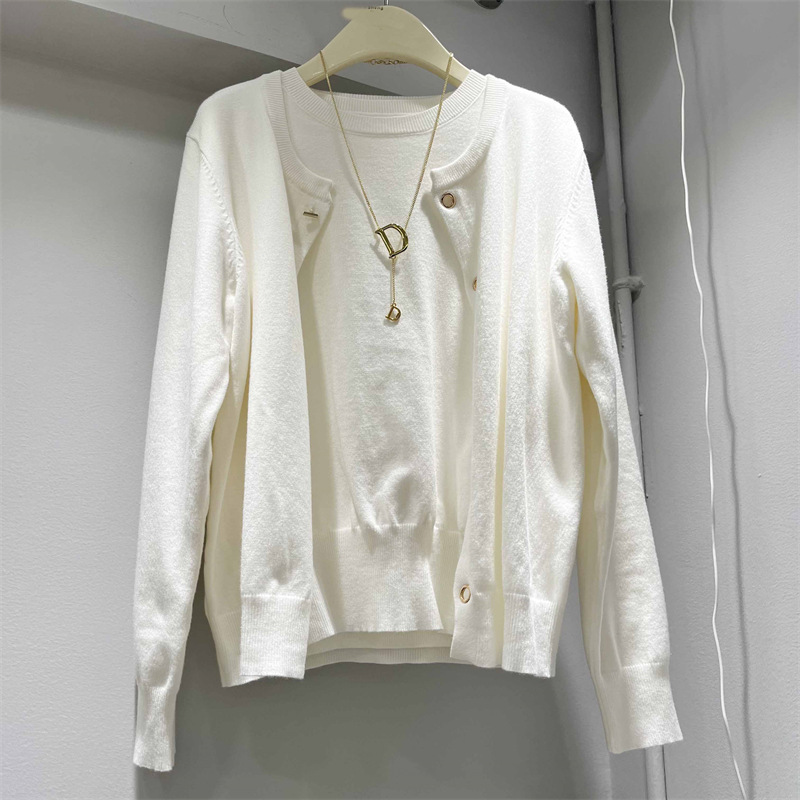 经典百搭2025秋新款针织开衫圆领长袖外套外搭+套头针织两件套女