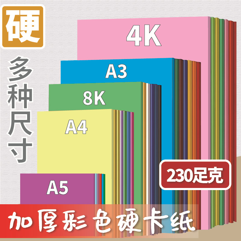 230g彩色卡纸A4做手工幼儿园8k硬卡纸硬加厚A3画画用4K跨境A5批发