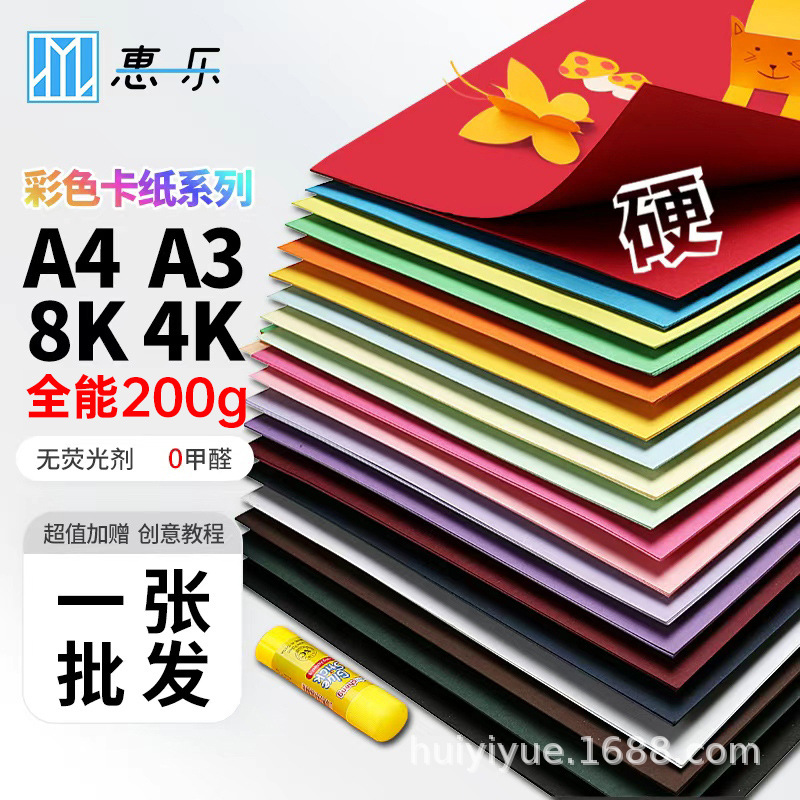 单张200g彩色卡纸A4加厚8K黑白卡16k硬卡4K手工纸A3学生手工DIY纸
