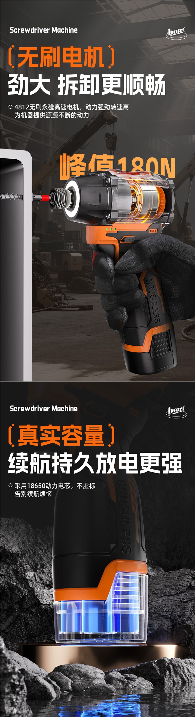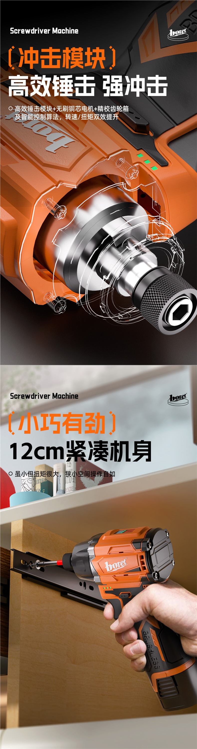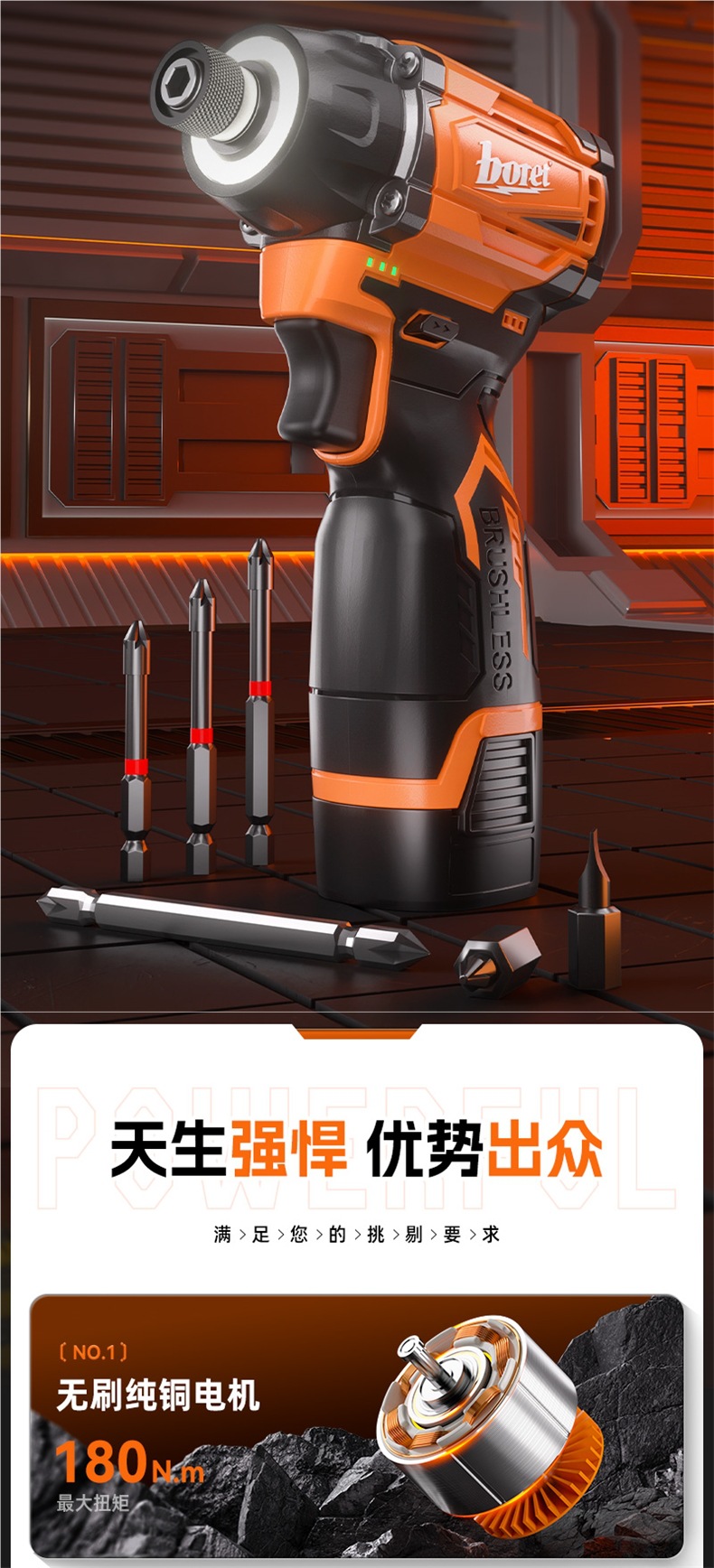 伯尔特无刷锂电冲击起子机家用电动螺丝高扭充电式螺丝批电起子