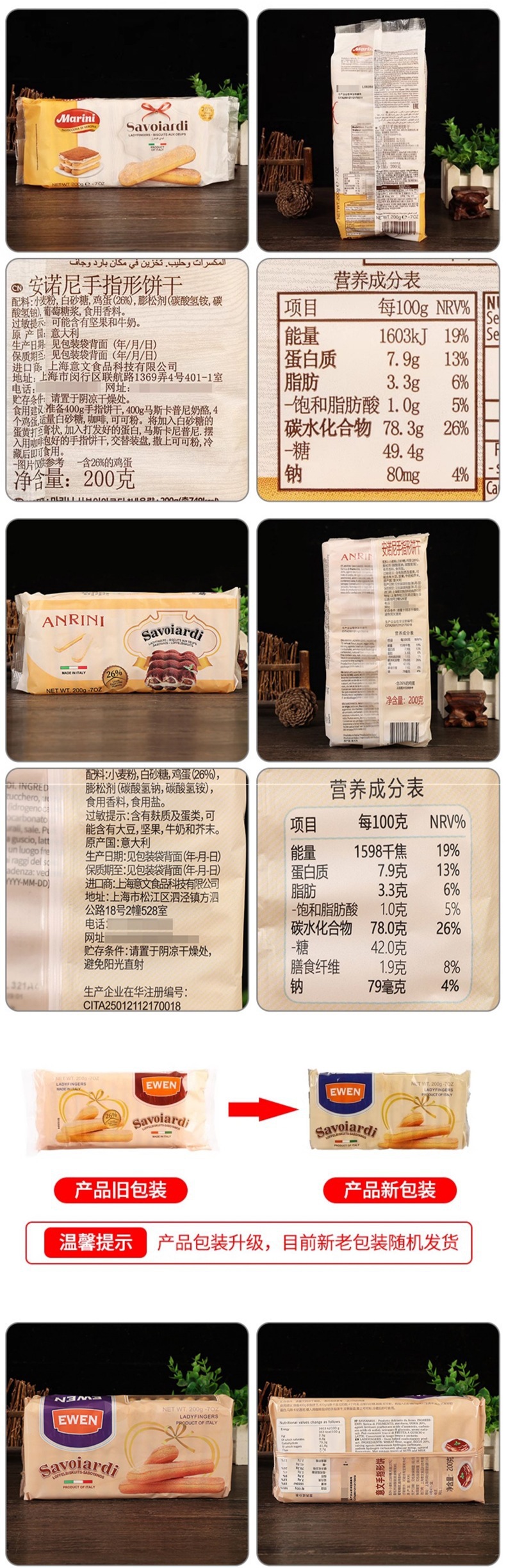 安诺尼手指饼干200g*3包意大利烘焙装饰材料提拉米苏蛋糕围边整箱