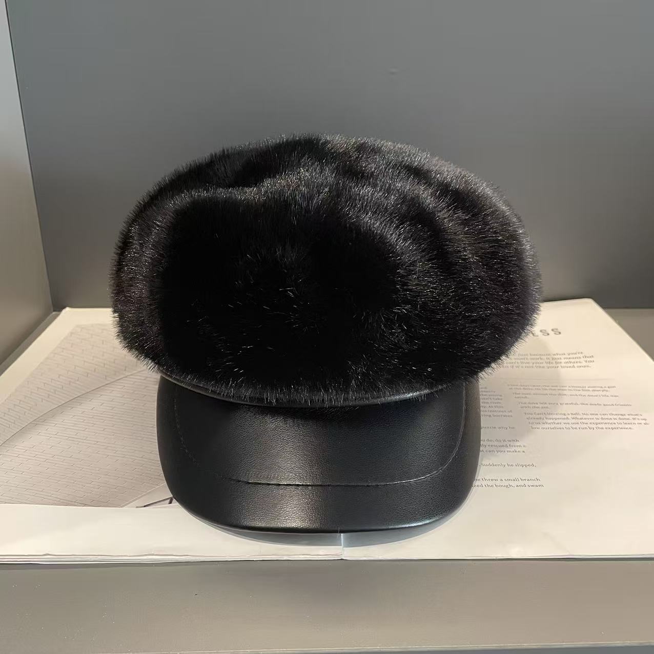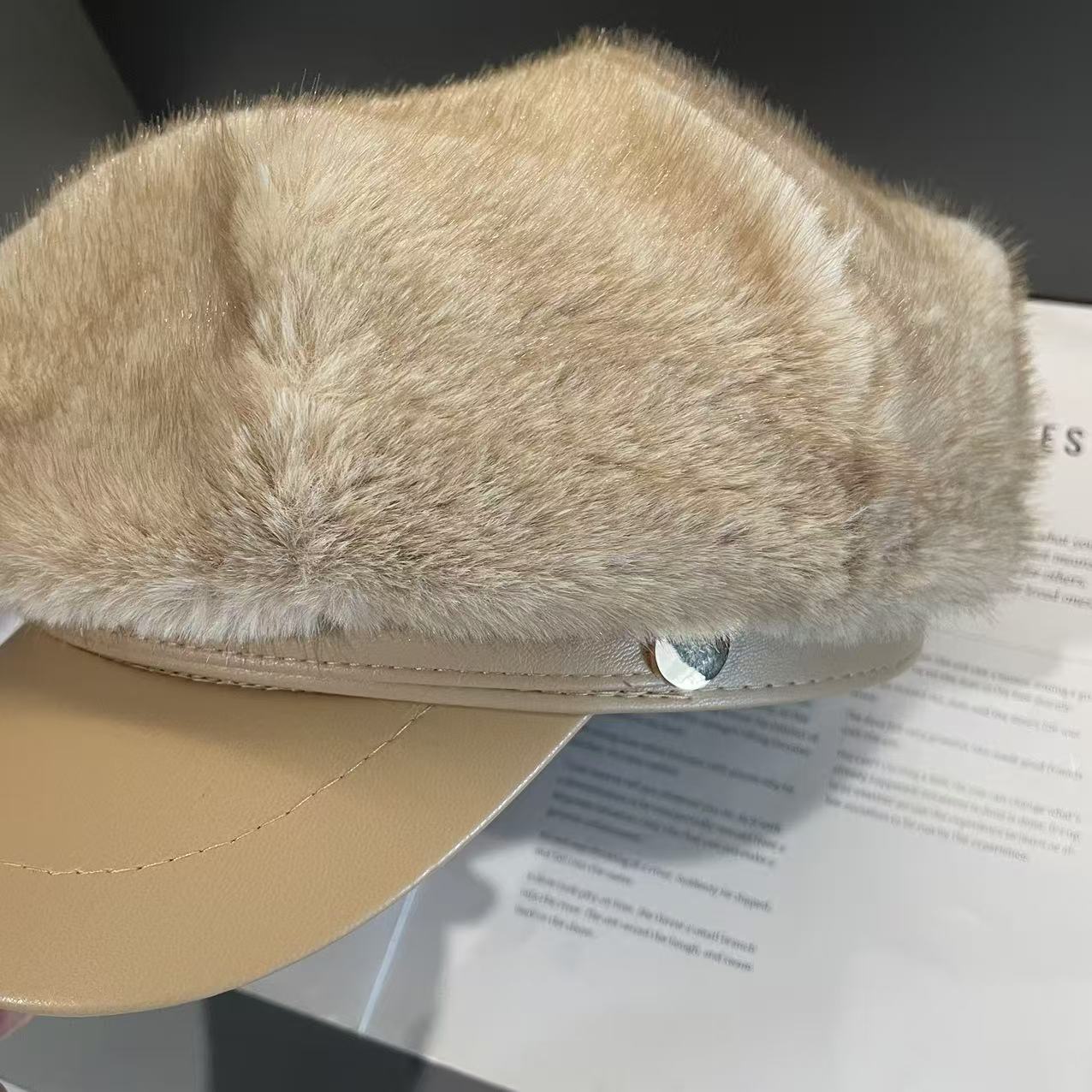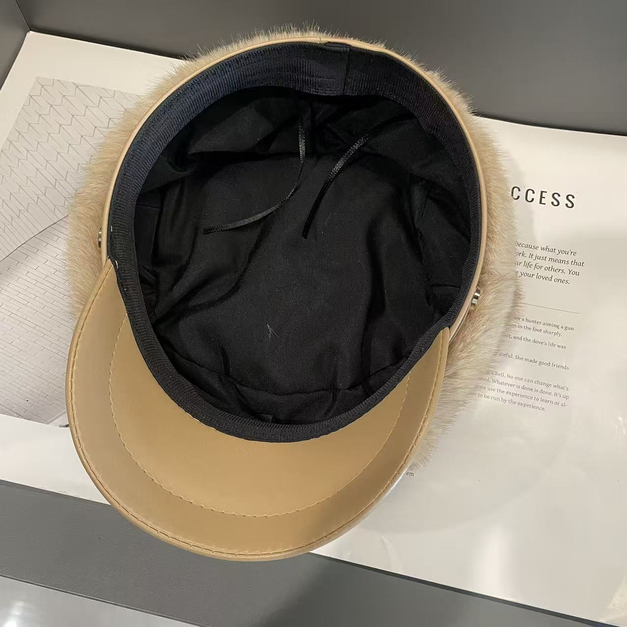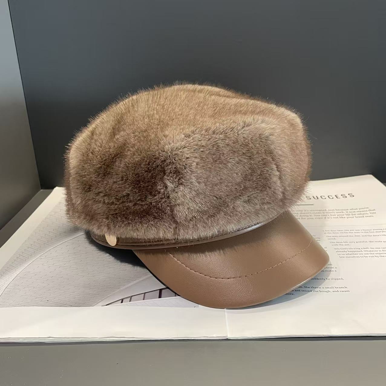 秋冬の金属の蝶結びはミンクの毛の八角の帽子をまねます。