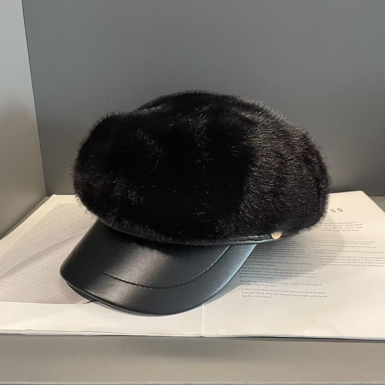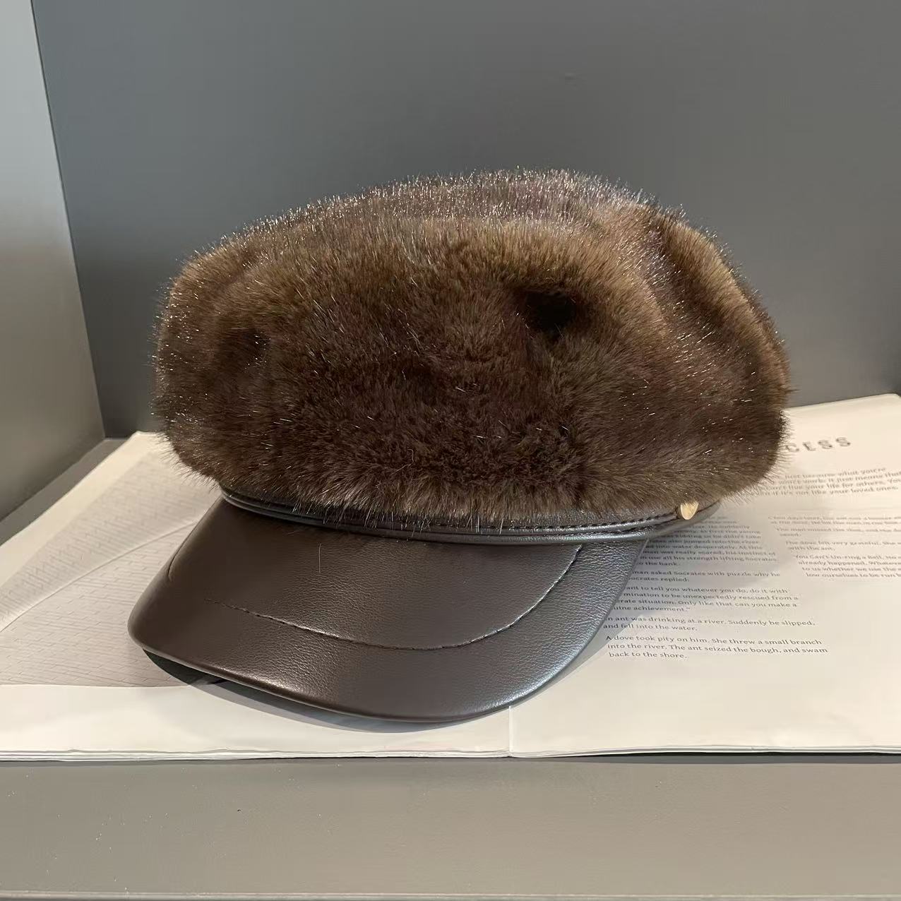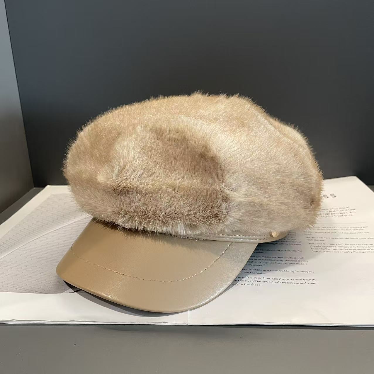 大帽仿水貂毛报童帽女生英伦风时髦街拍气质八角帽秋冬天画家帽子