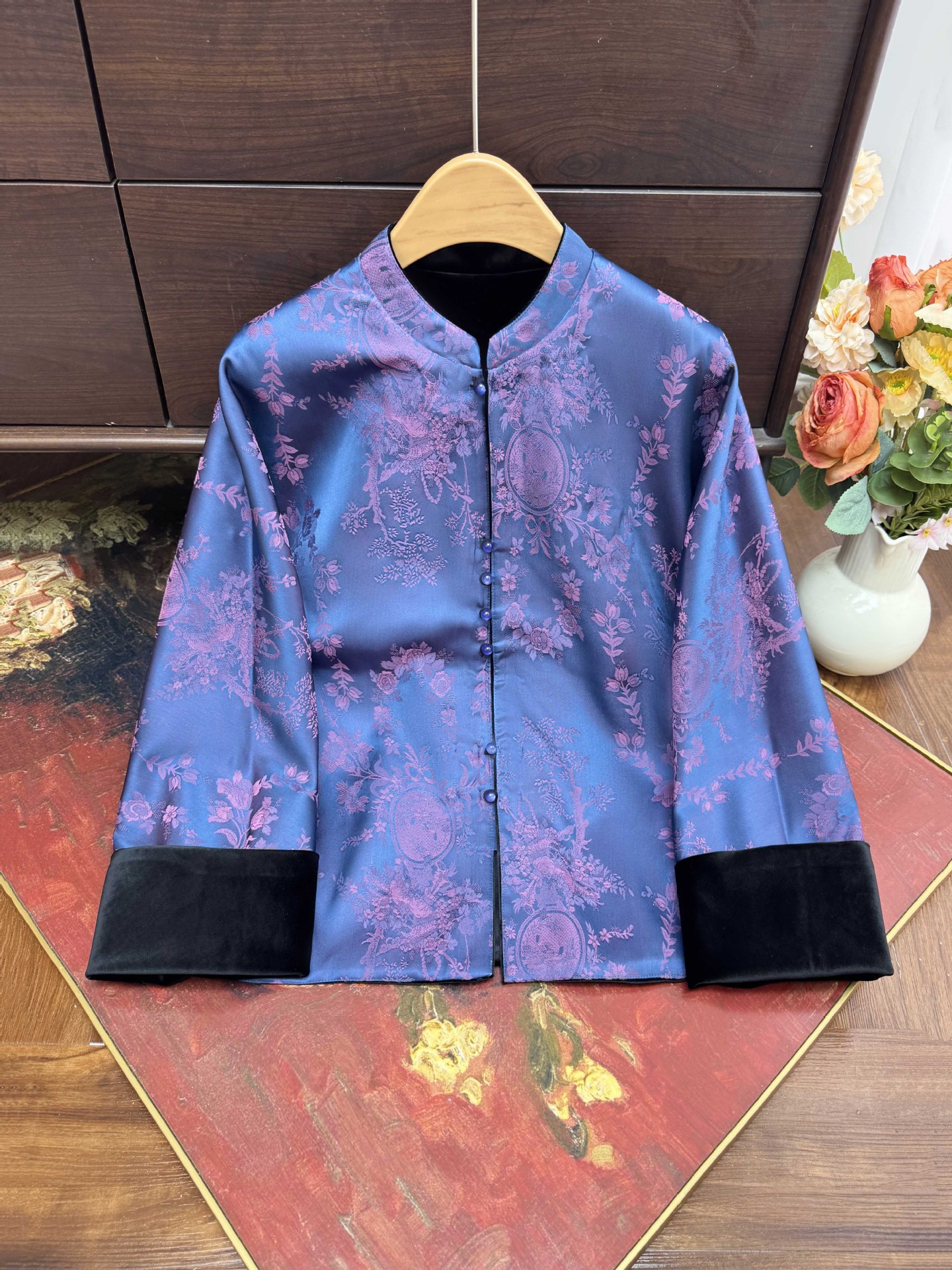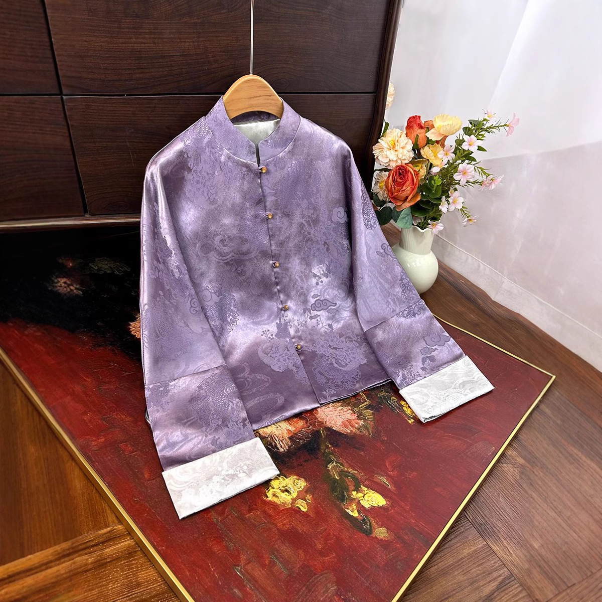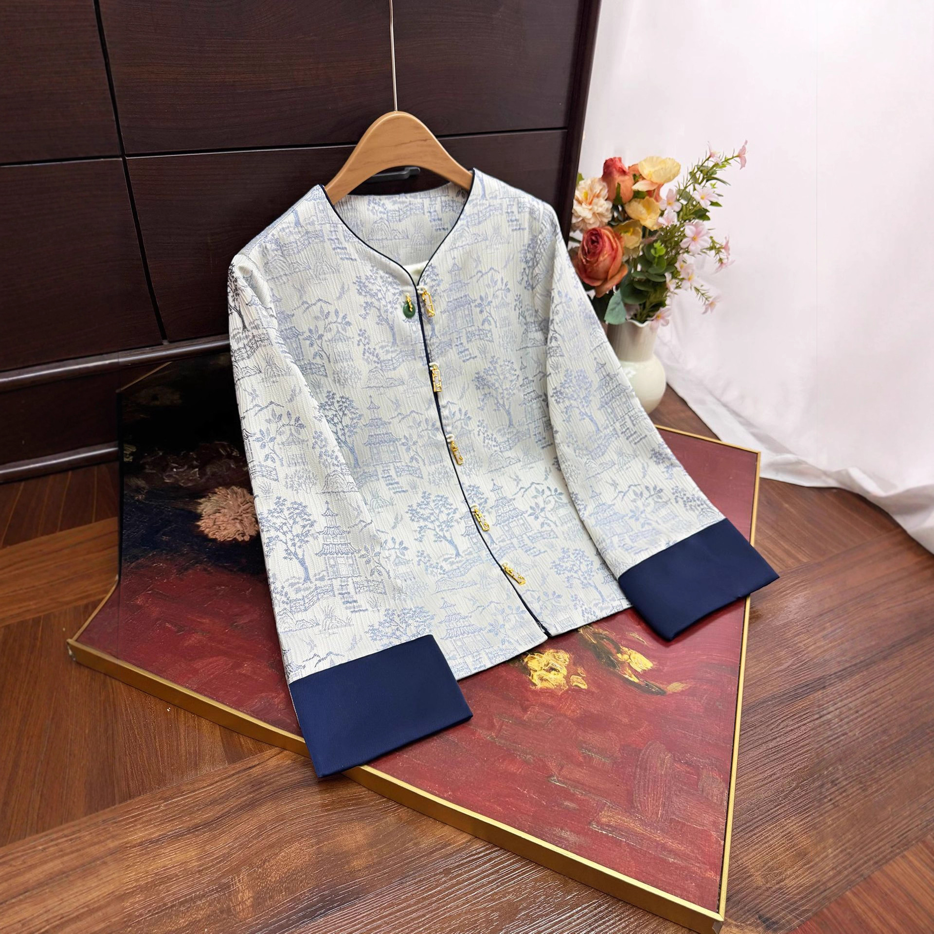 2025早秋款新中式国风提花外套衬衫女立领显瘦宽松气质开衫上衣女