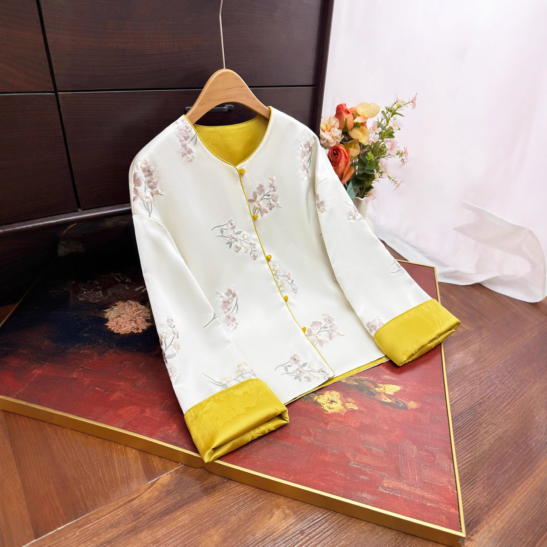 2025早秋新款新中式国风双面穿刺绣提花外套圆领长袖气质开衫上衣
