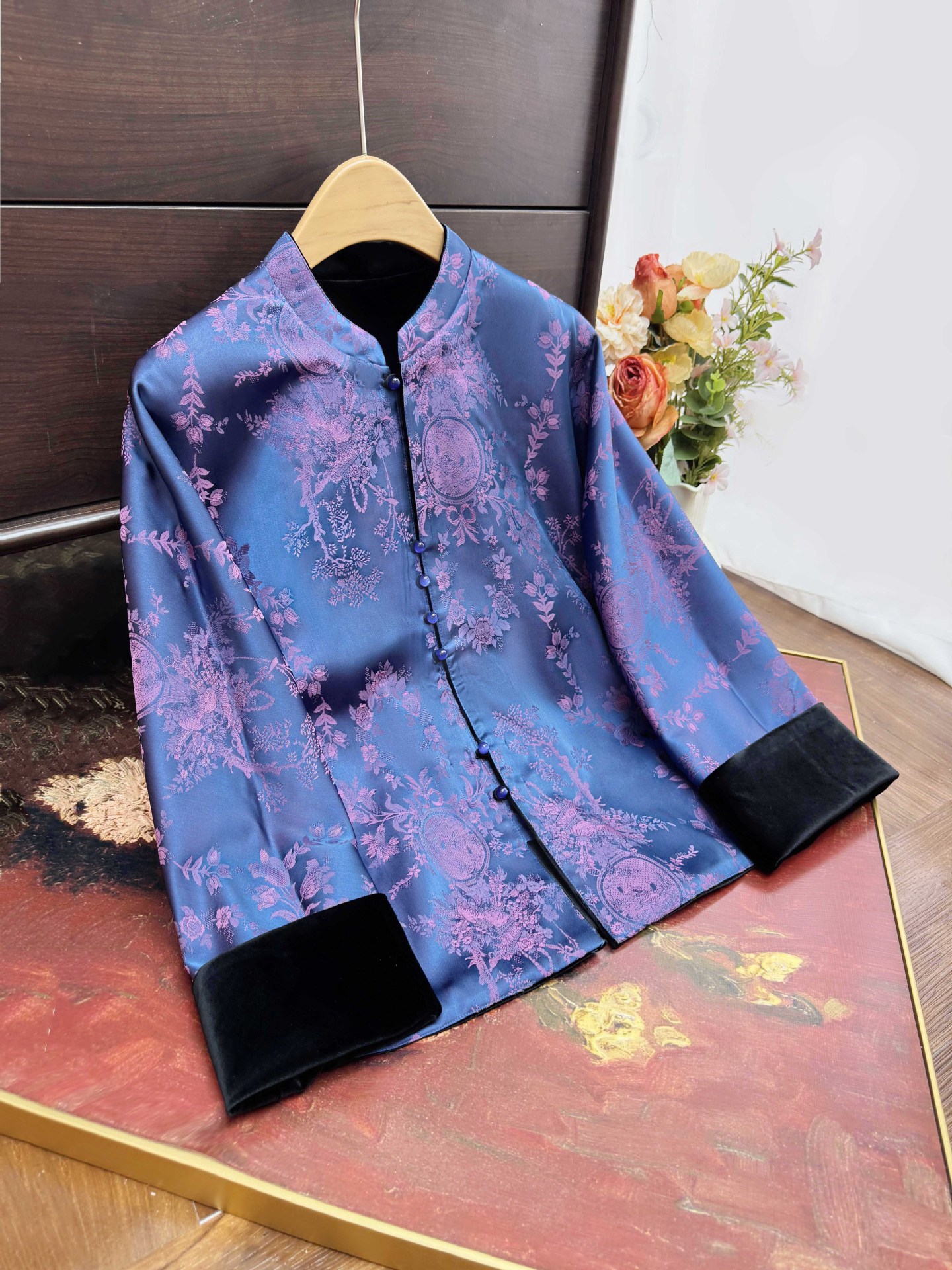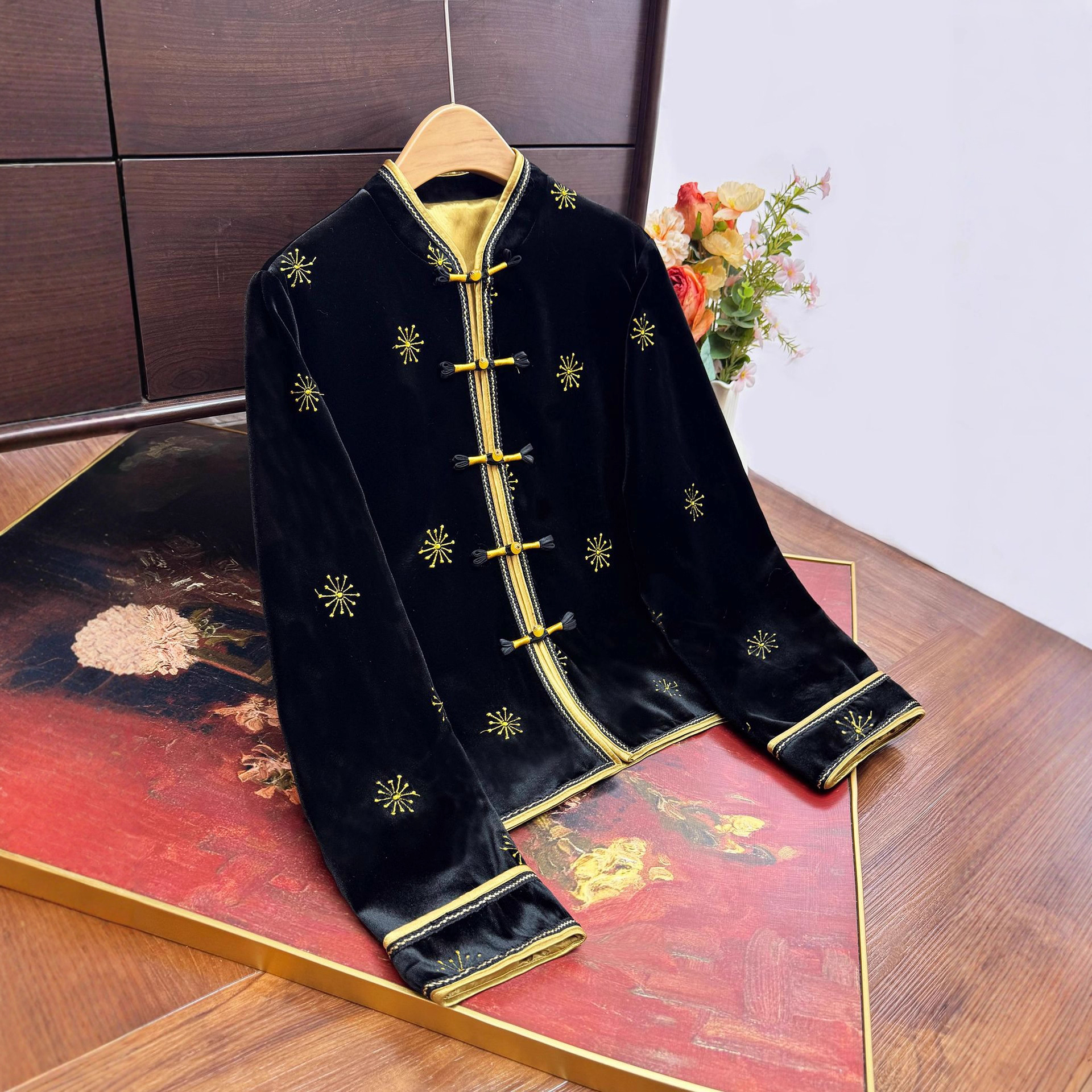新中式国风丝绒刺绣外套2025秋季新款立领盘扣衬衫高级感轻奢开衫