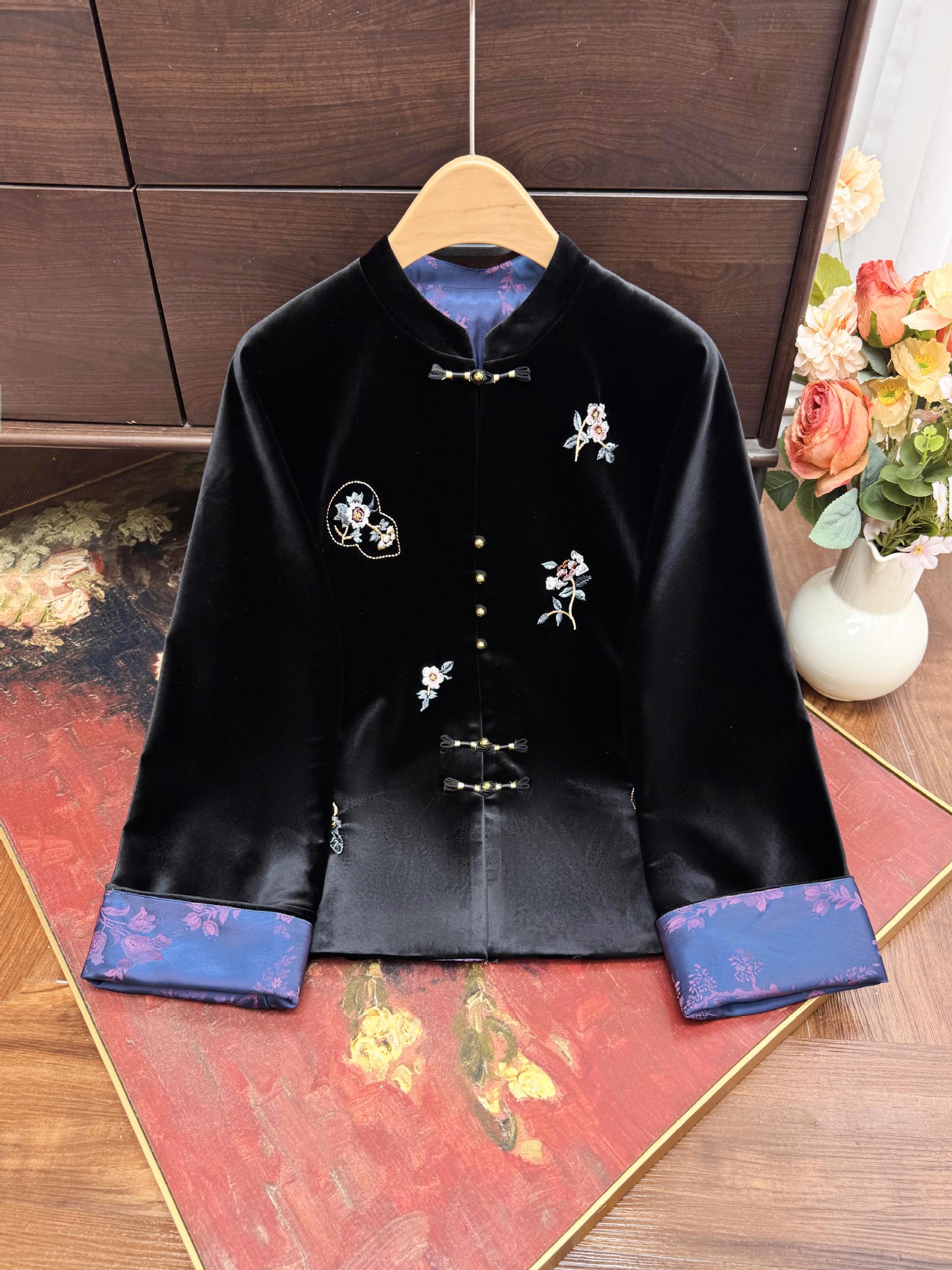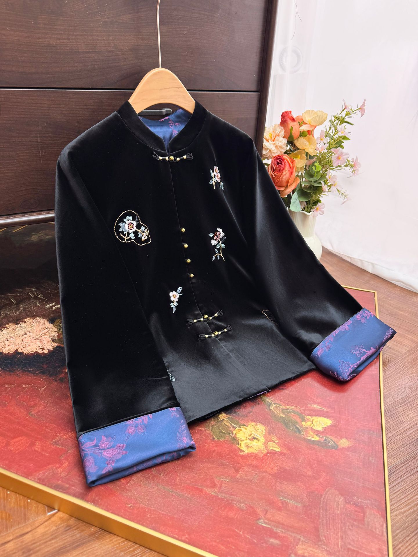 新中式国风双面穿丝绒刺绣外套2025秋季新款立领高贵盘扣开衫上衣