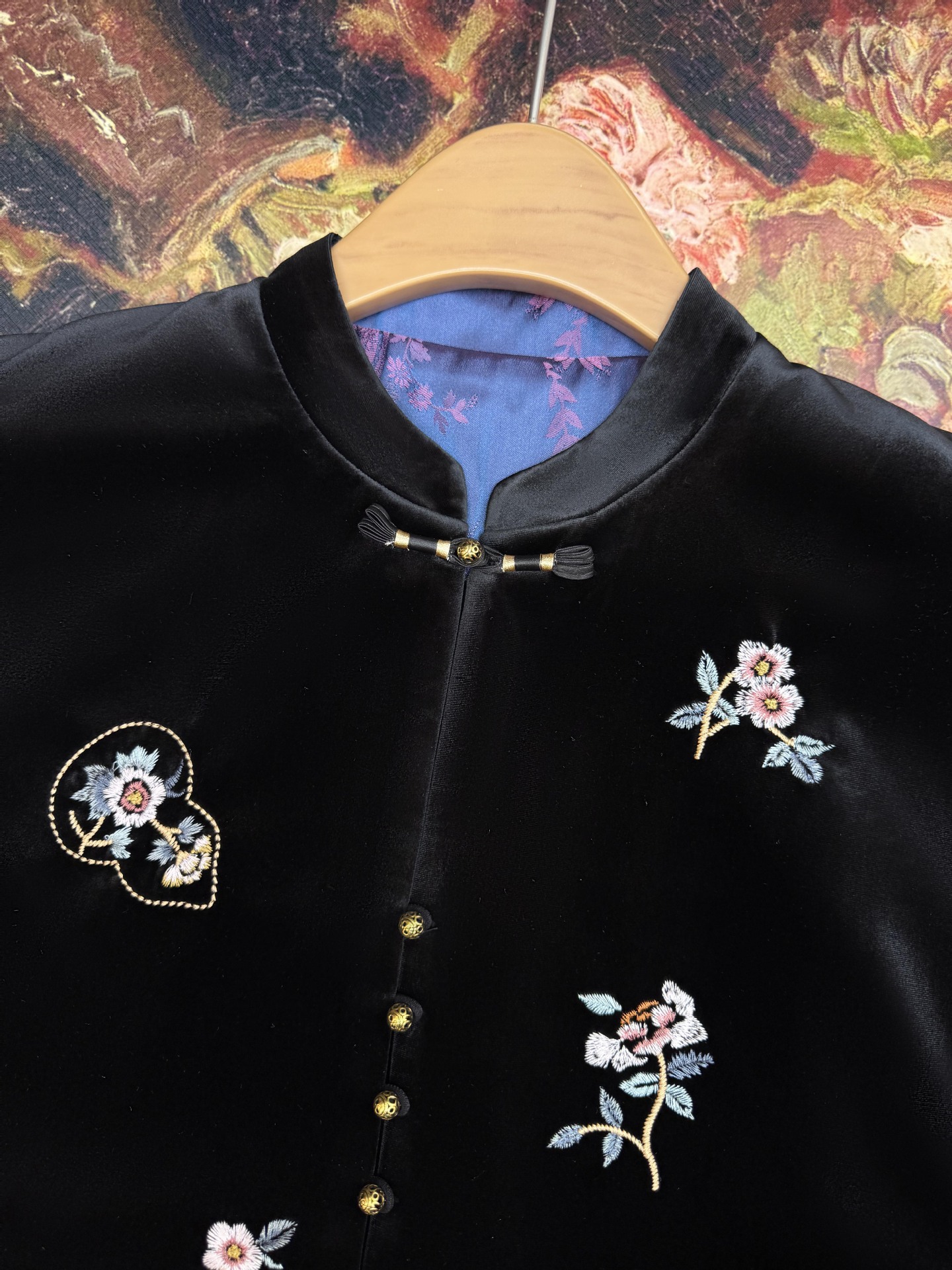 新中式拼接丝绒刺绣加棉外套2025冬季新款国风设计感保暖宽松上衣