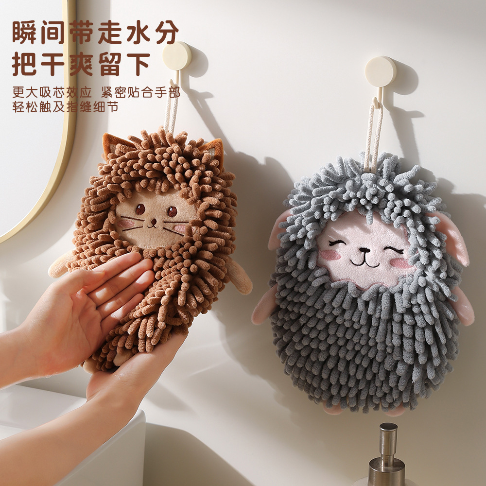 新款卡通动物雪尼尔擦手巾挂式加厚吸水擦手球厨房浴室家用大毛巾