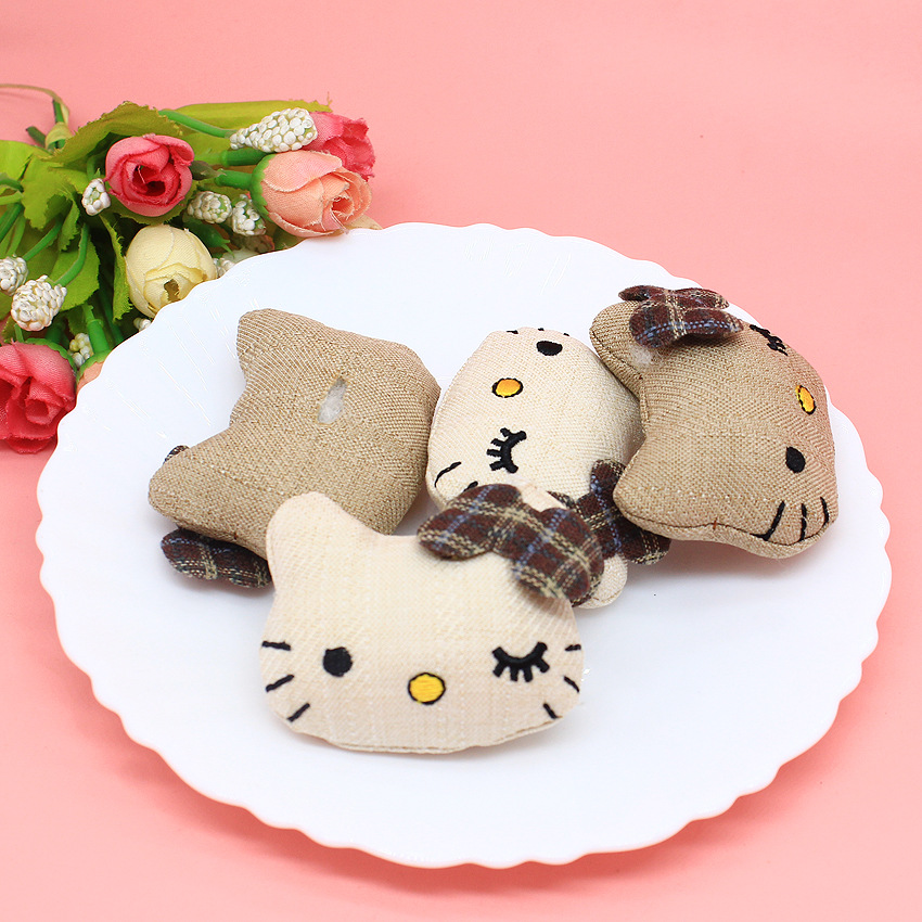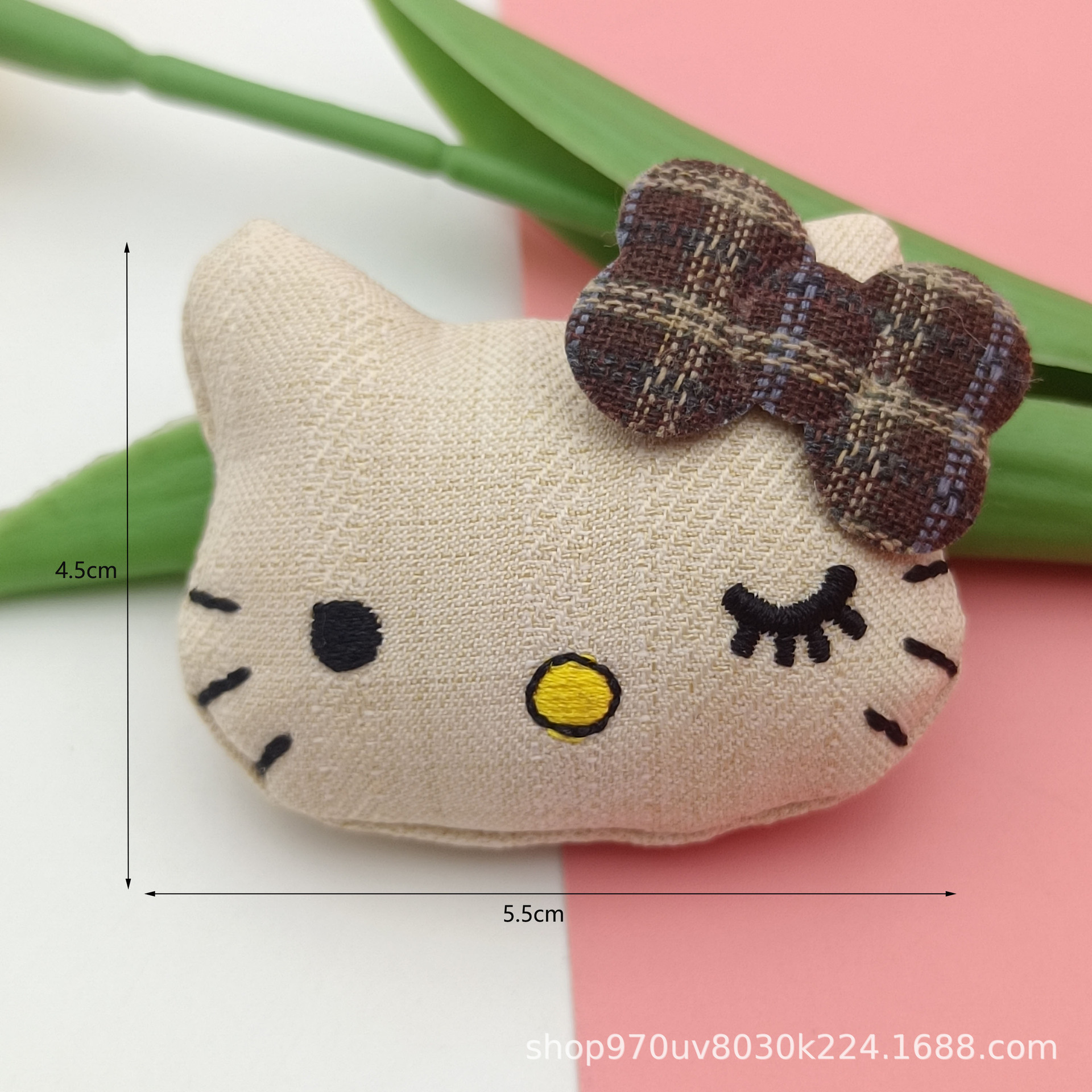 韩版新款充棉布艺格子小猫公仔爱心发夹个性配饰包包挂件服装辅料