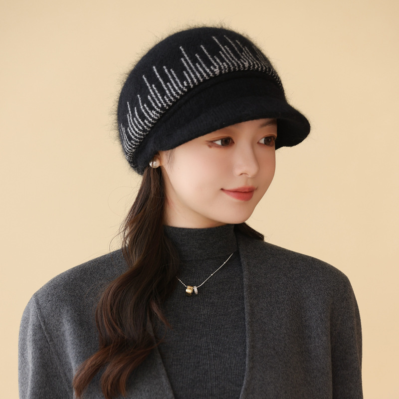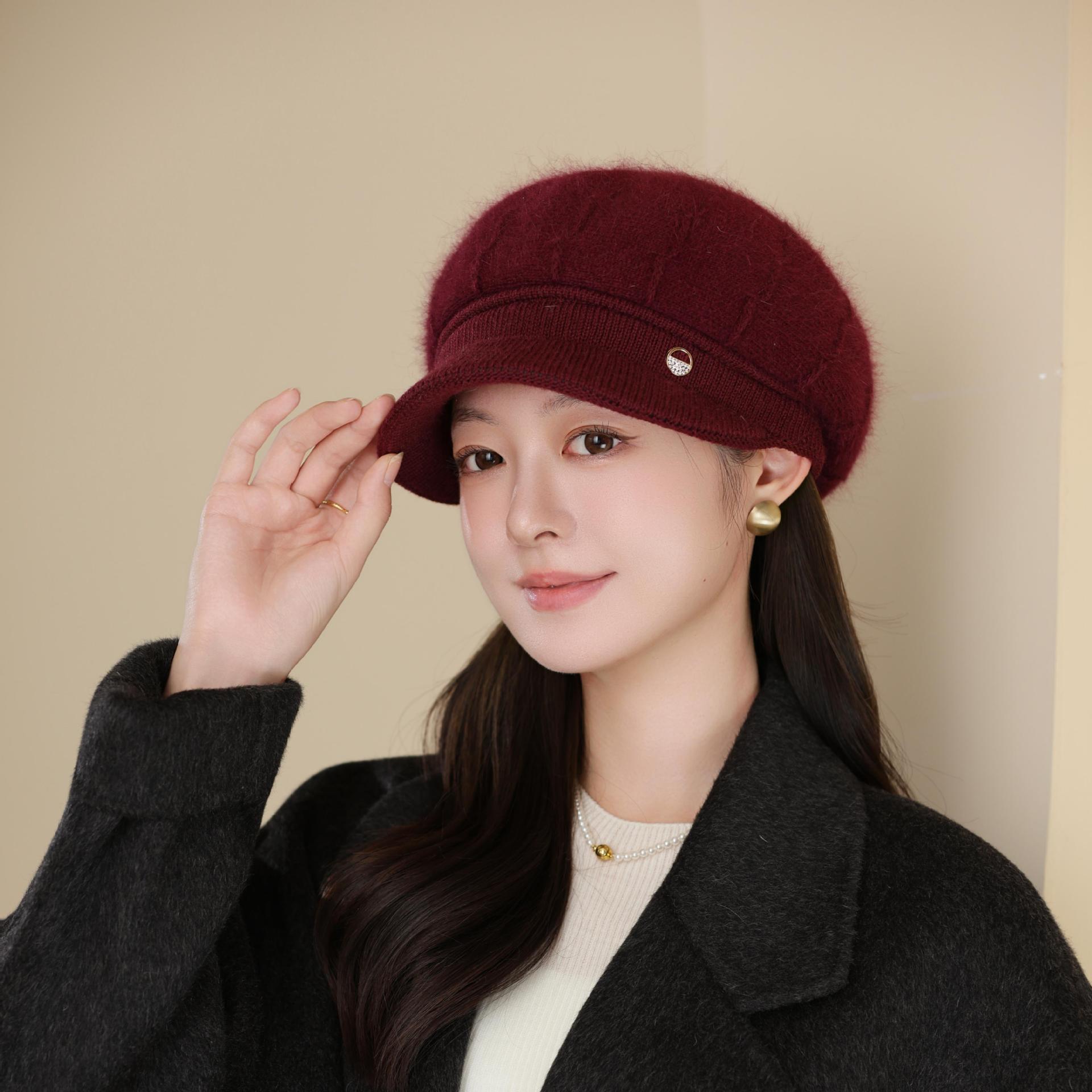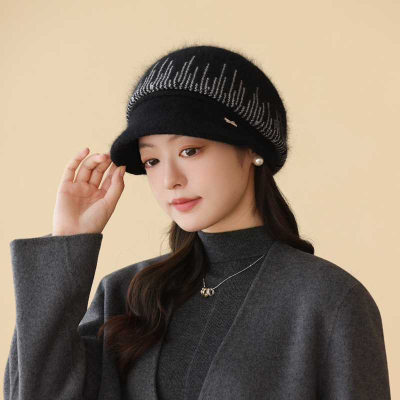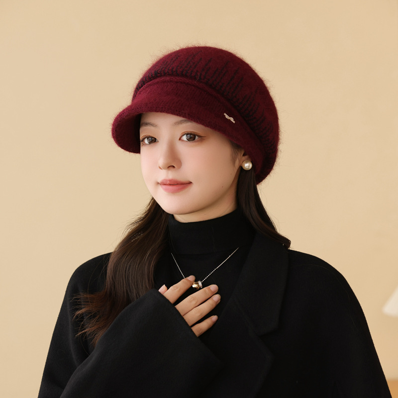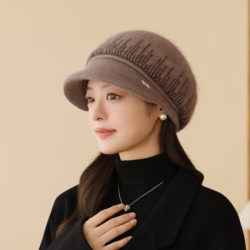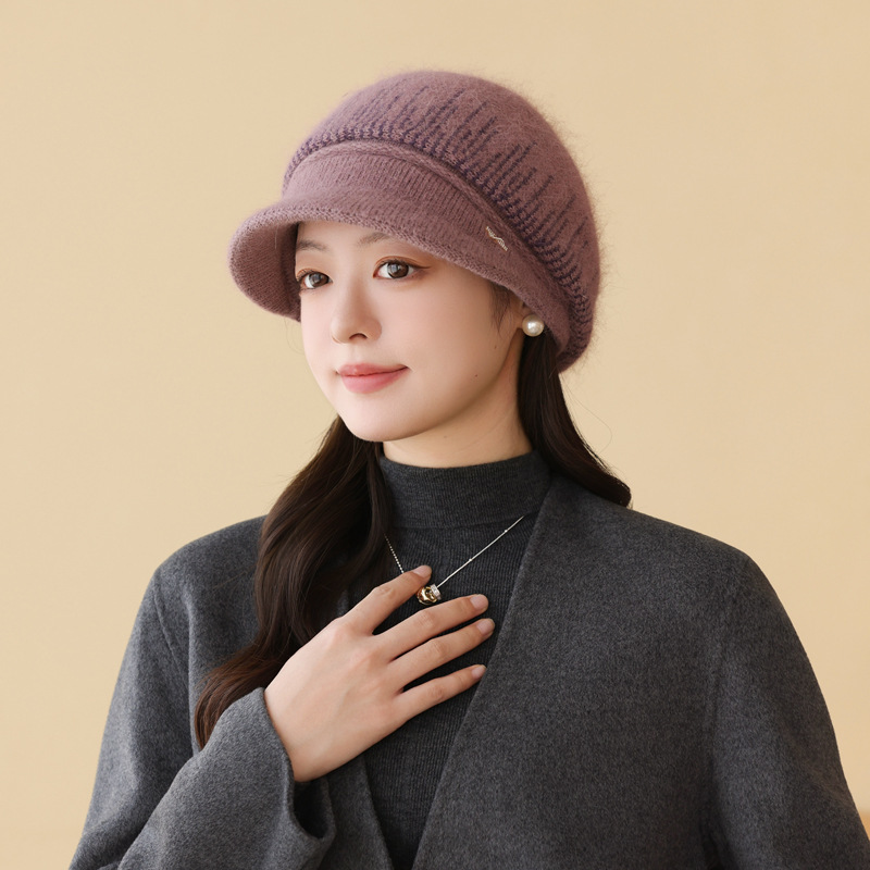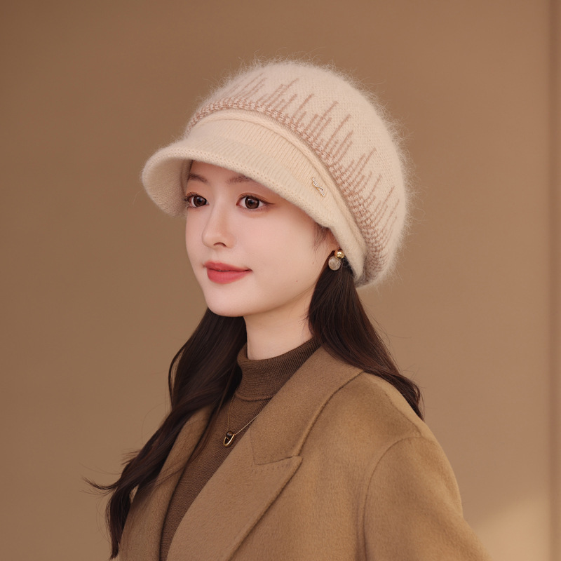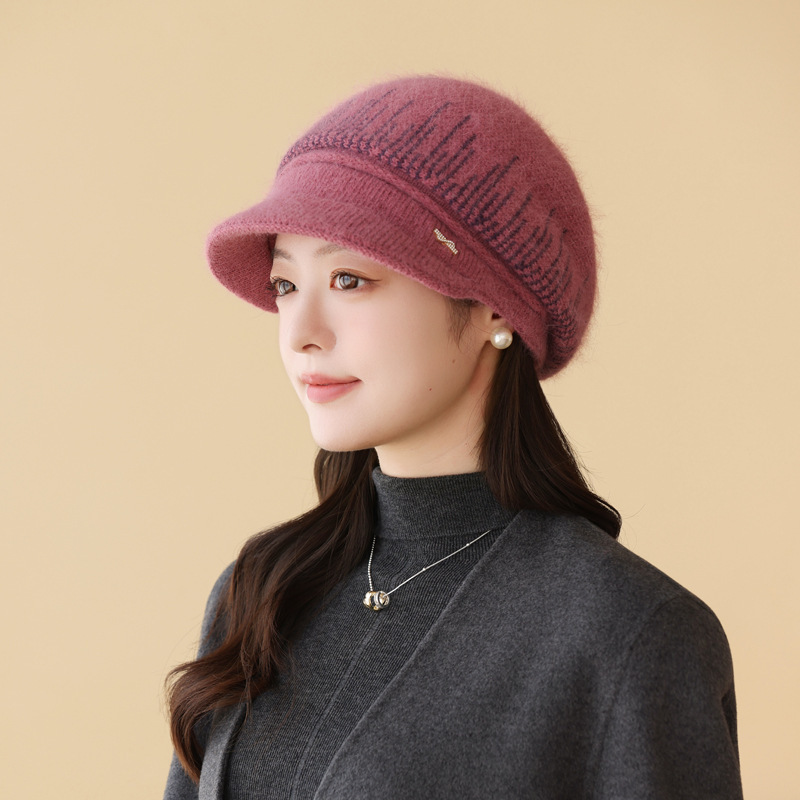 兔毛针织毛线帽子女秋冬季百搭冬天保暖帽妈妈中老年人护耳鸭舌帽
