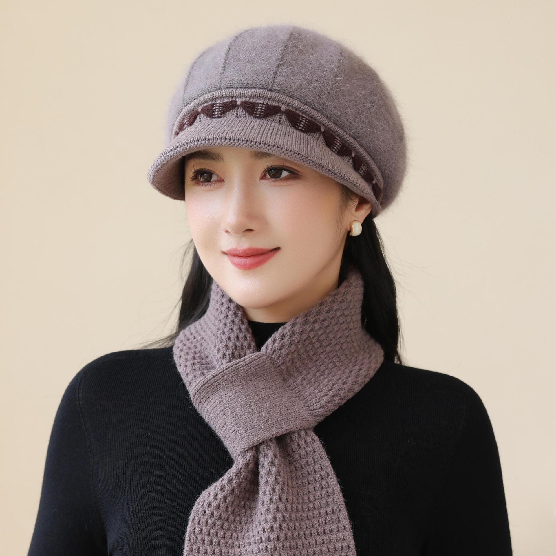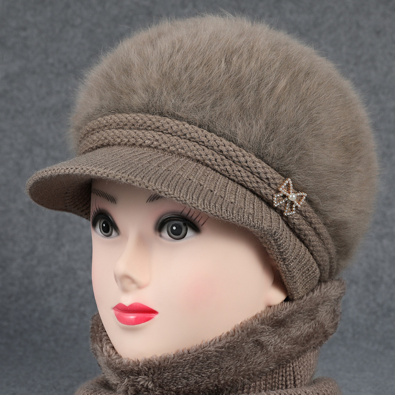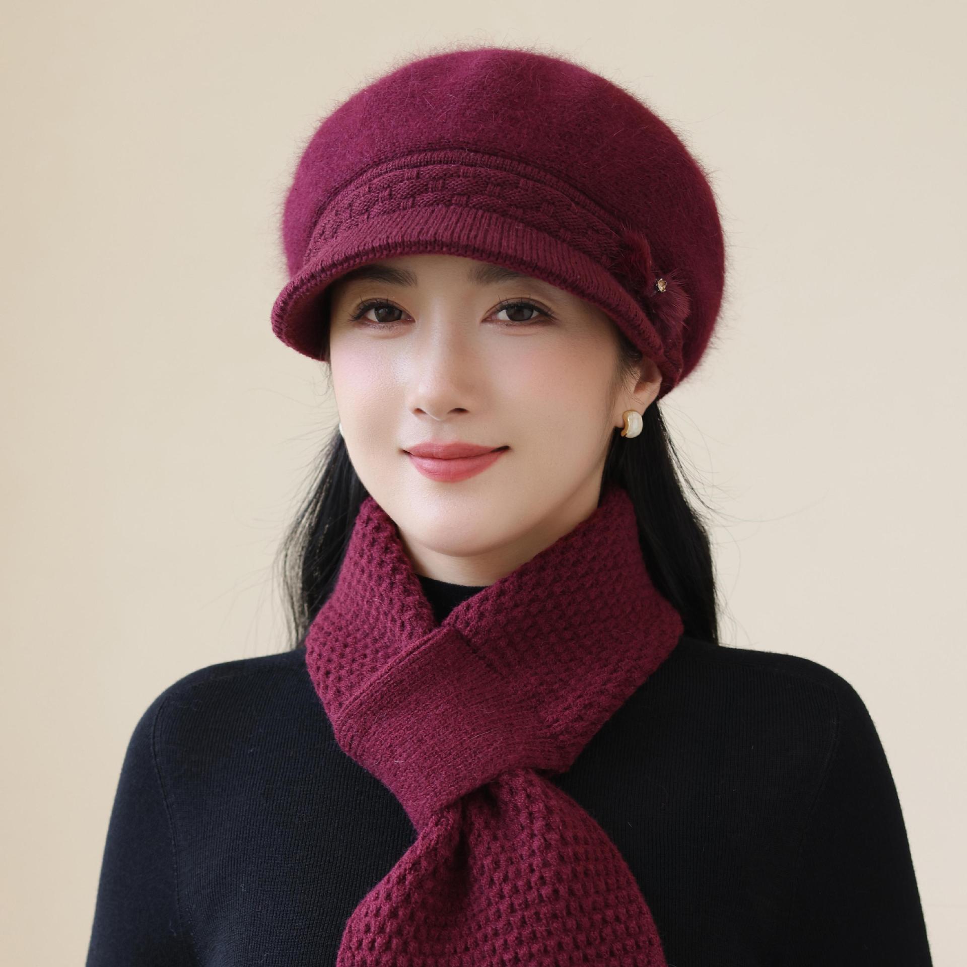 新款兔毛帽子女士妈妈针织毛线帽中老年人保暖加绒帽奶奶防寒围巾