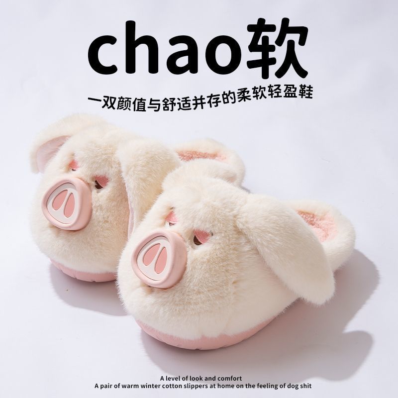 小猪棉拖鞋女款2025新款室内家居可爱防滑厚底保暖毛绒棉鞋女冬季