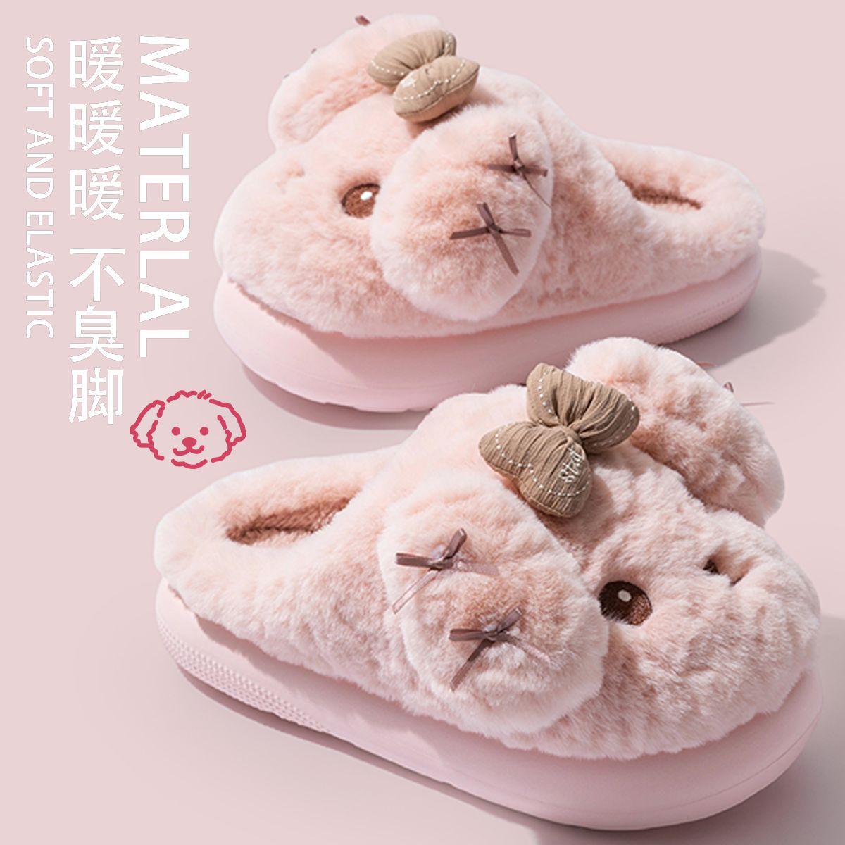 泡芙小狗棉拖鞋女可爱冬季室内防滑保暖半包跟毛绒软底家居毛毛鞋