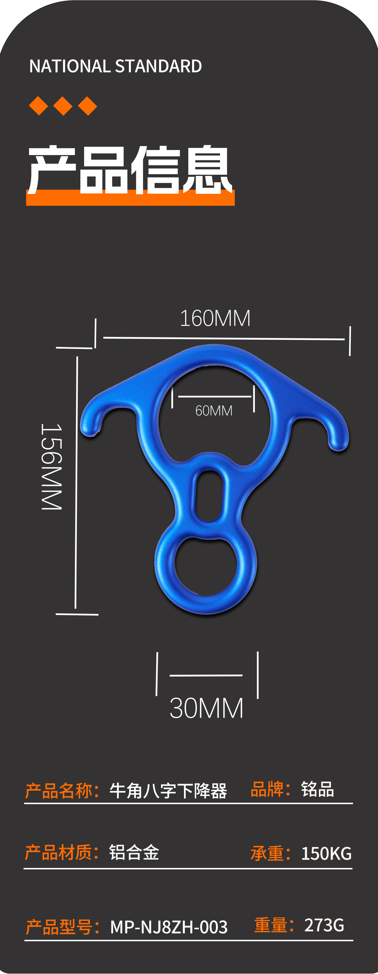 户外攀岩缓降装备空中瑜伽单点牛角八字环高空下降器8字环速降器