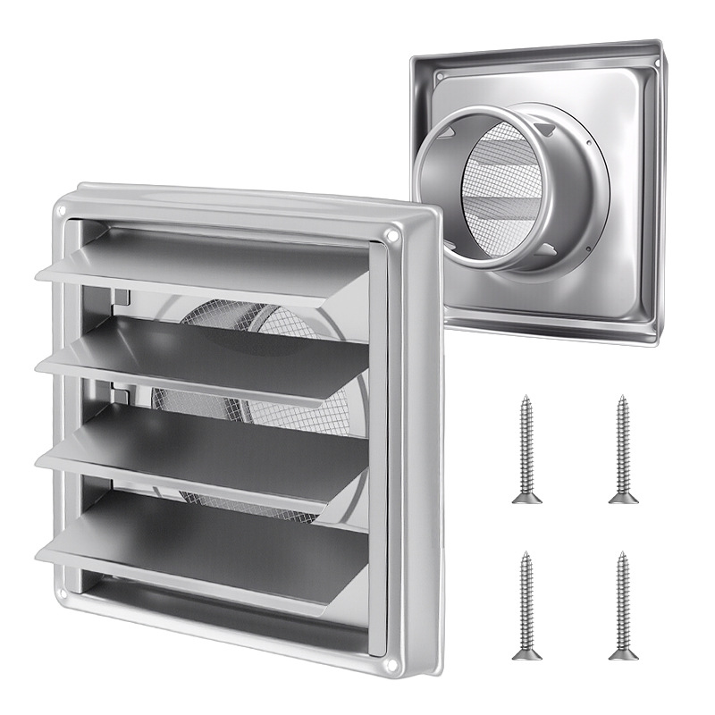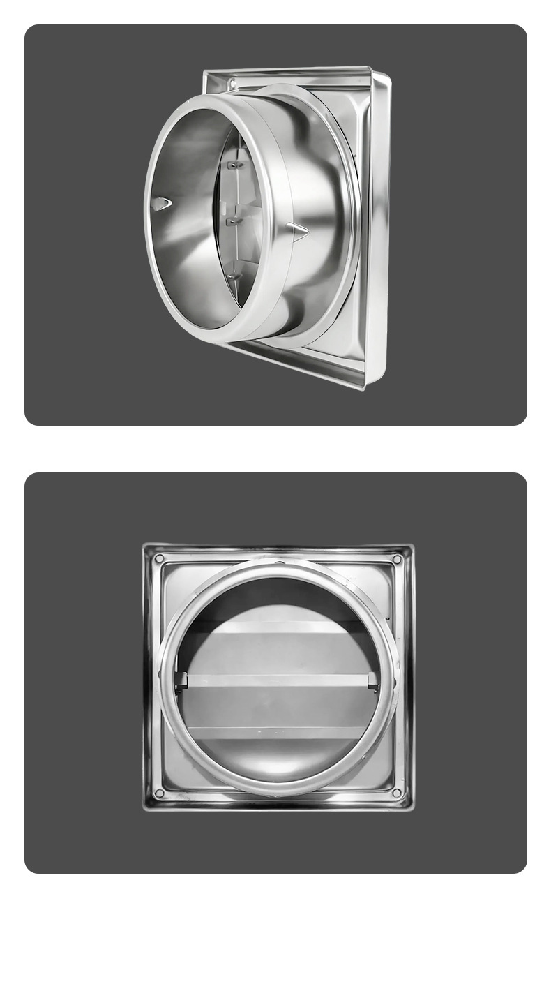 304 ステンレス鋼外壁フロントガラスレインカバー空気出口キッチン排気ファン排気ファン排気口キャップ正方形