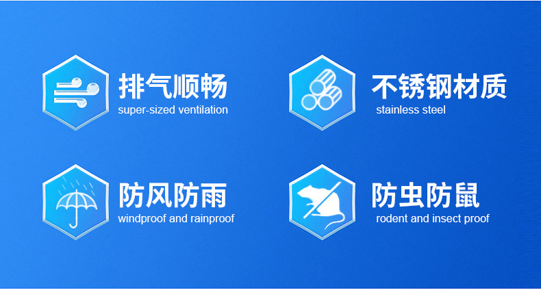 304ステンレスフード防雨カバー通風口通気排気フード油煙フード排煙管外壁201吹出口