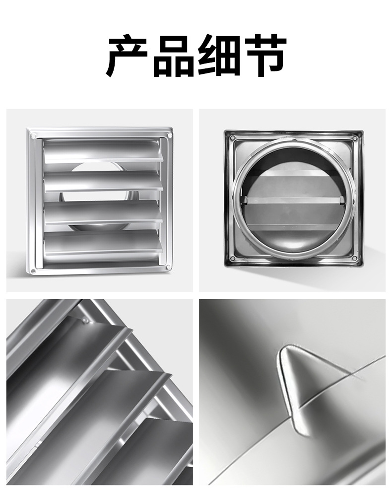 方形不锈钢出风口通风帽通风口防风帽烘干机排风管罩外墙止回阀盖