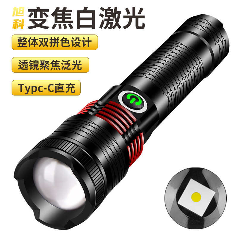 クロスボーダー白色レーザー強力な光懐中電灯ダブルカラーアルミニウム合金伸縮ズーム Type-C 充電式照明長距離