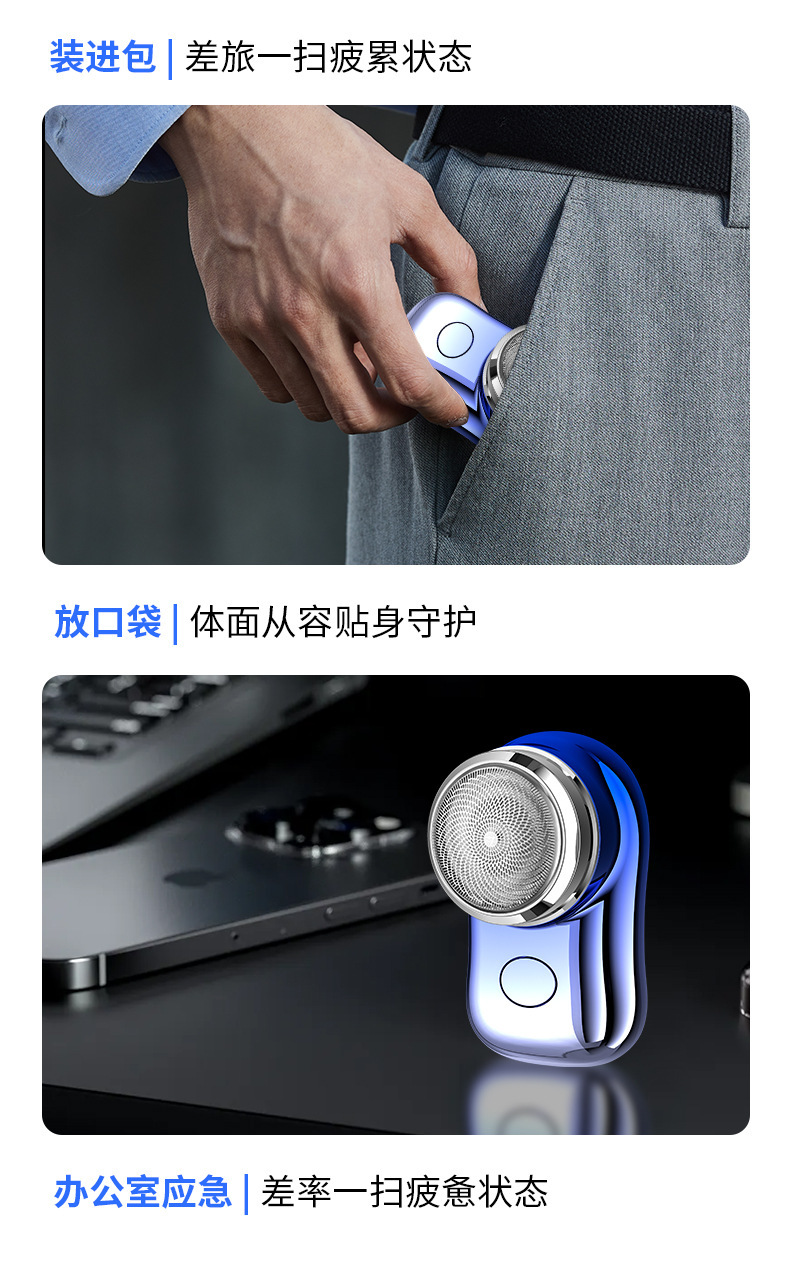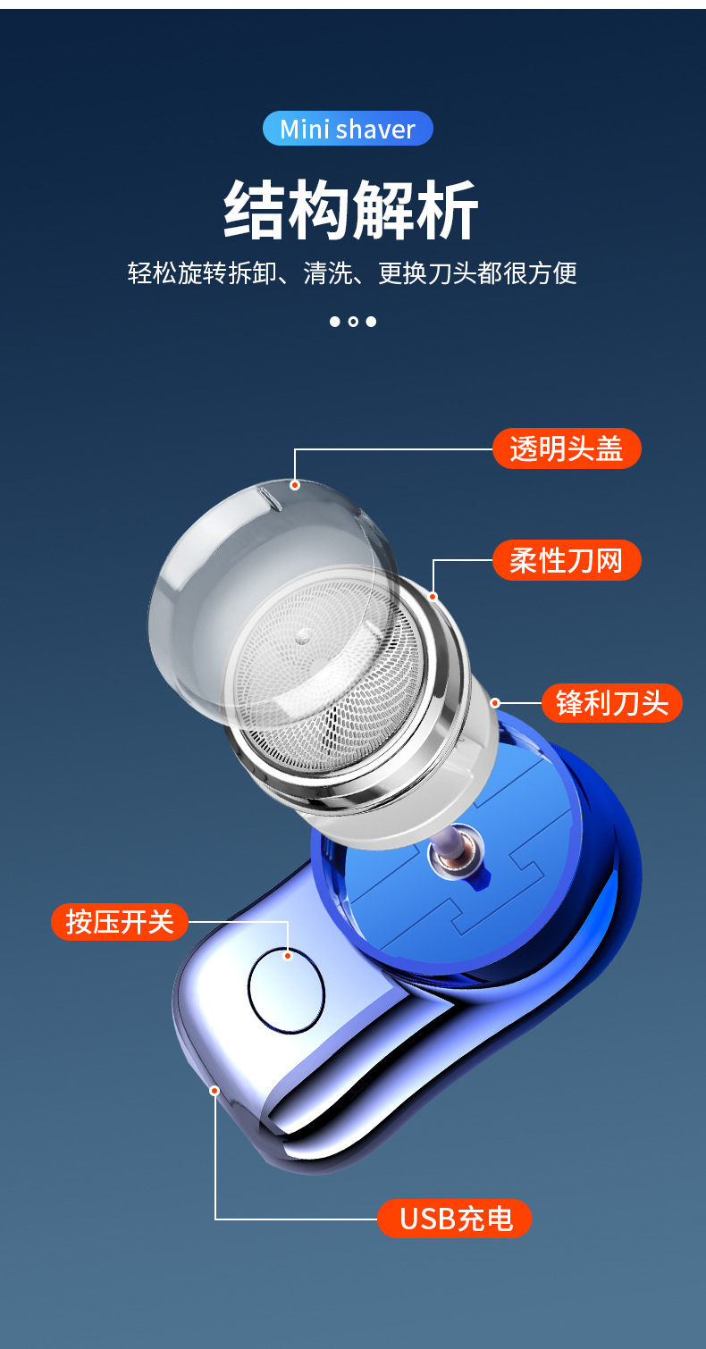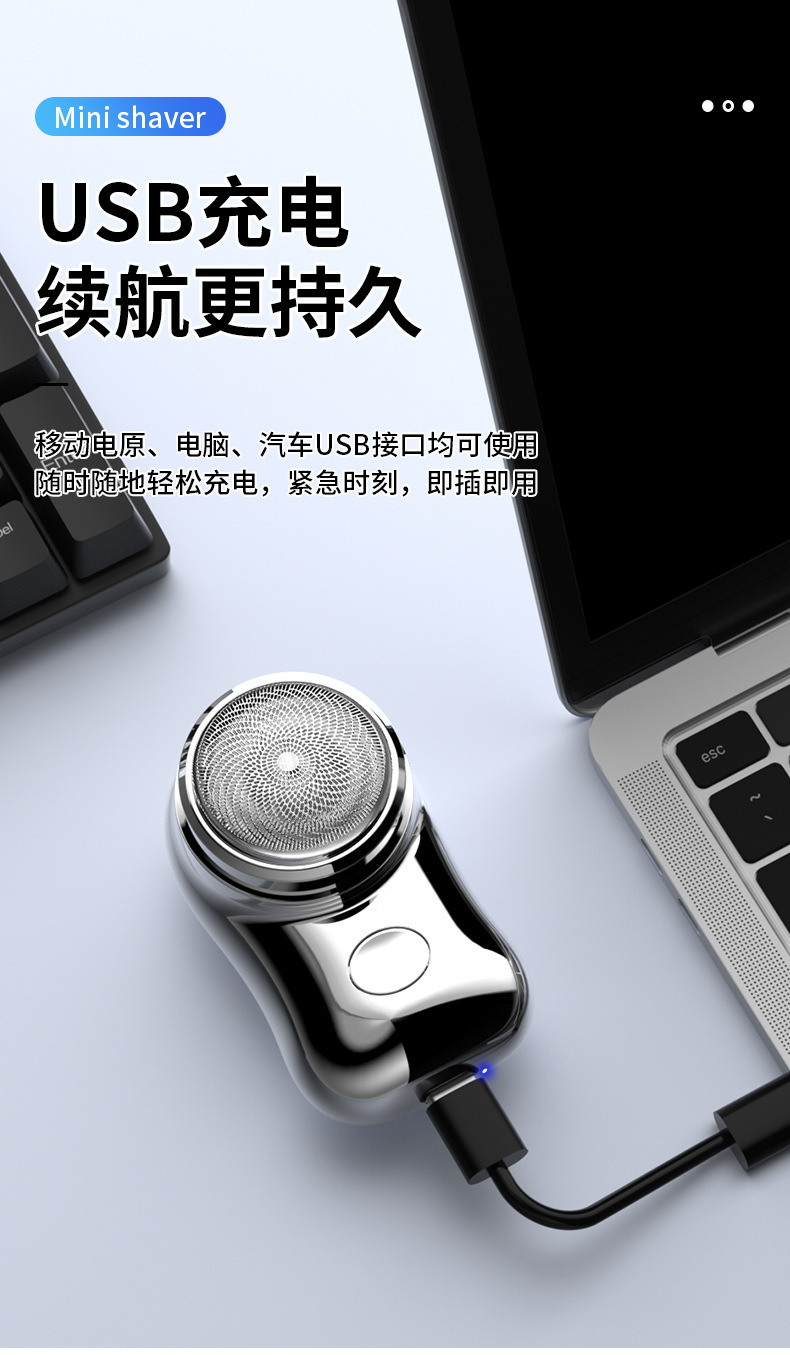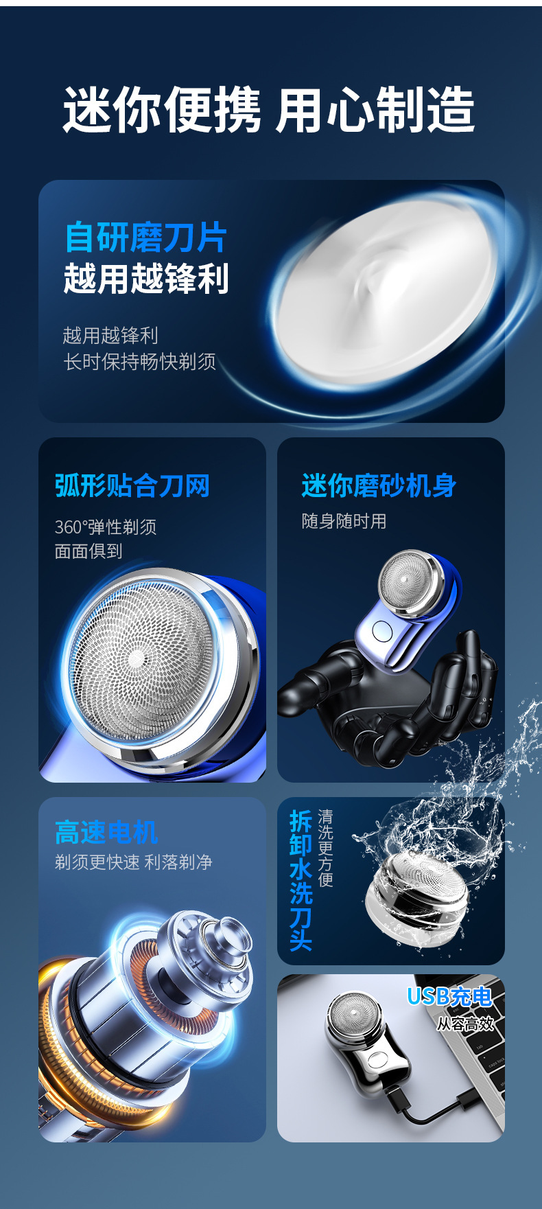 爆款电动剃须刀便携迷你刮胡刀快充旅行刮胡刀男士车载刀头水洗
