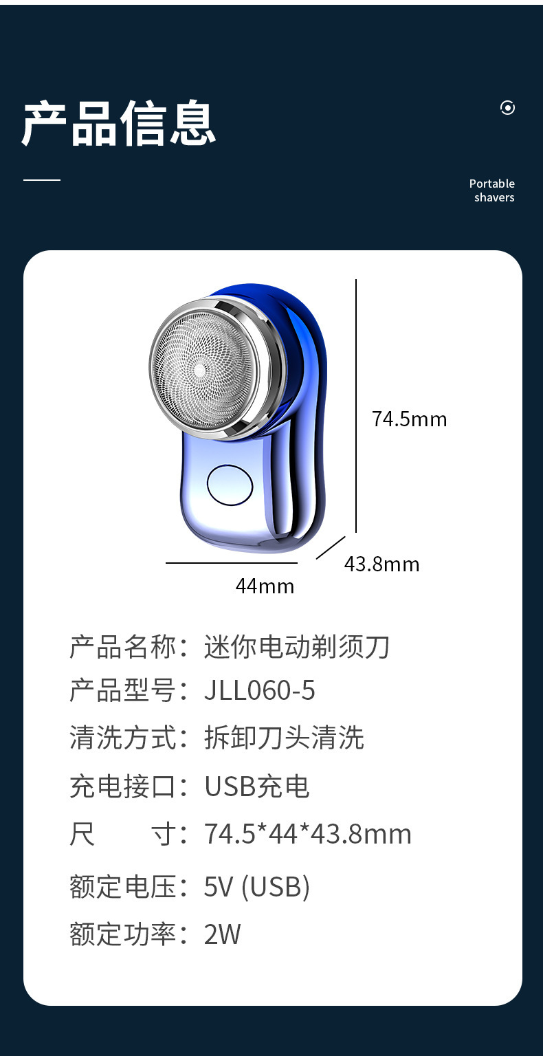 JLL060-5便携小钢炮男士电动剃须刀刮胡刀旅行便携迷你刮胡刀