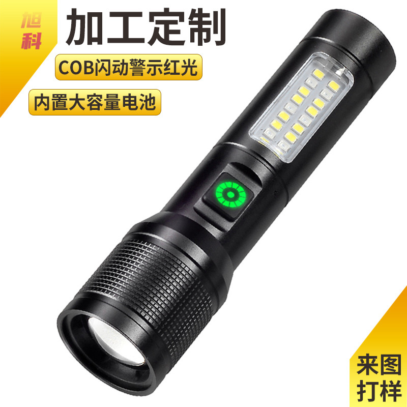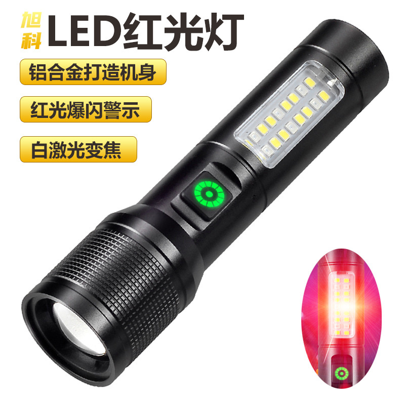 国境を越えた新製品LED強光懐中電灯充電可能な遠射携帯家庭用ミニCOB側灯赤色照明灯