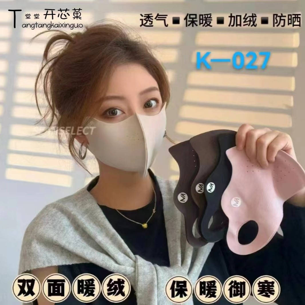 胶原蛋白保暖口罩秋冬暖绒支撑透气纯色防寒骑行防风防尘面罩防晒