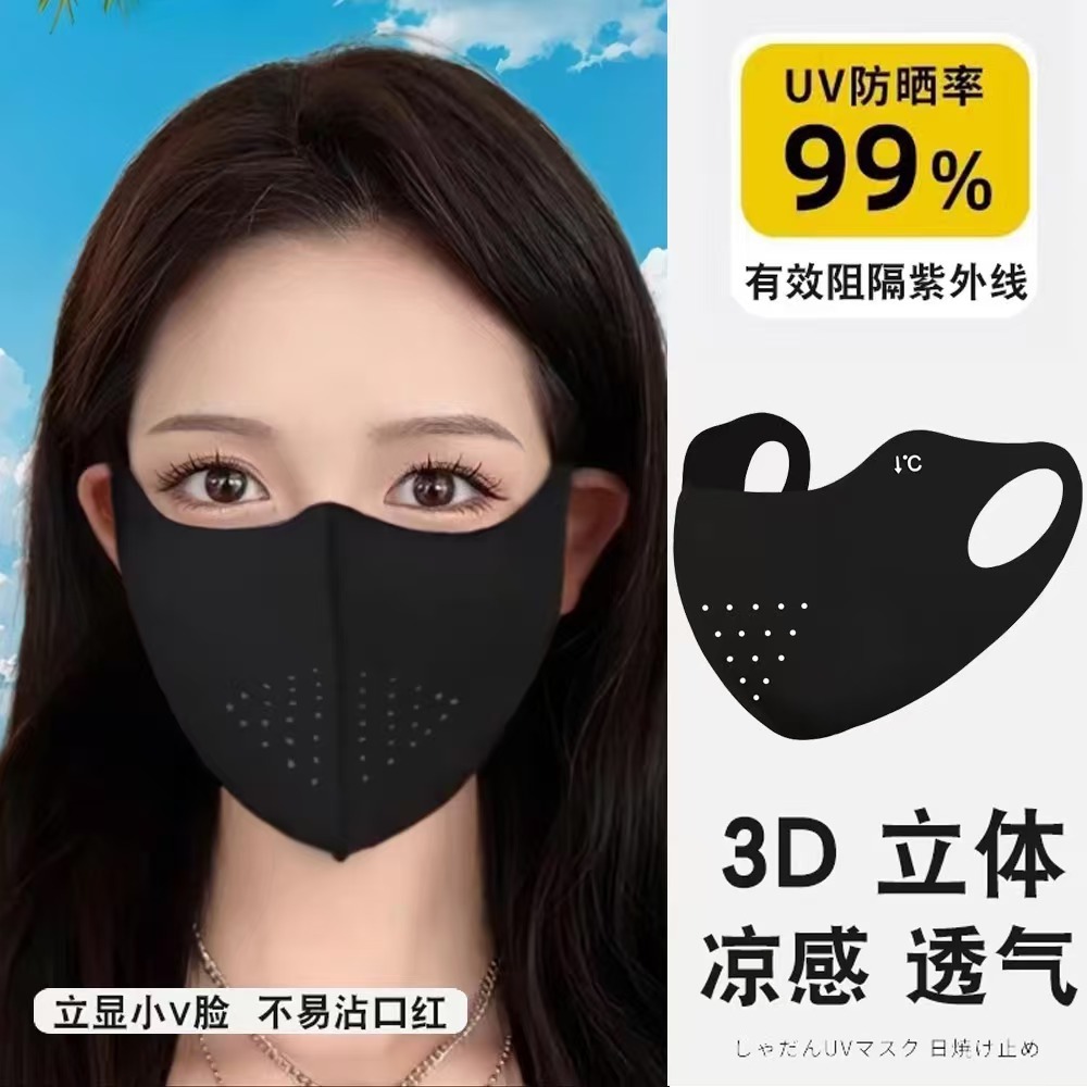 マスク 3D シームレスアイスシルク女性の抗 UV サンシェードオープンホール夏マスク目の保護通気性防風通気性モデル