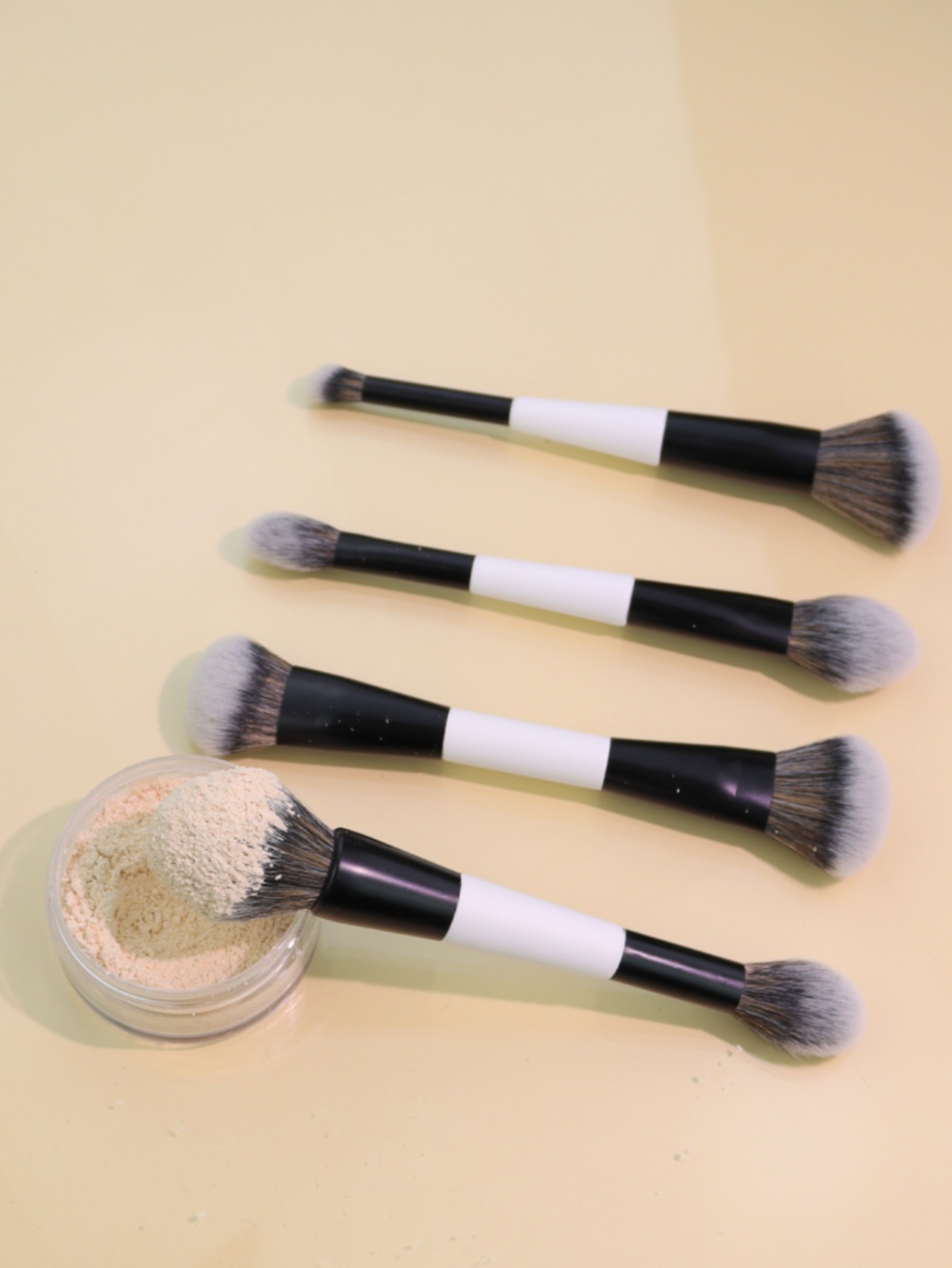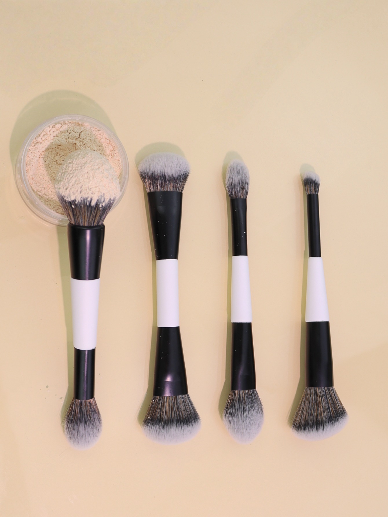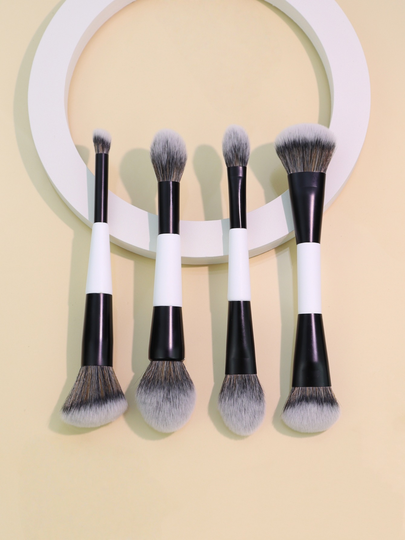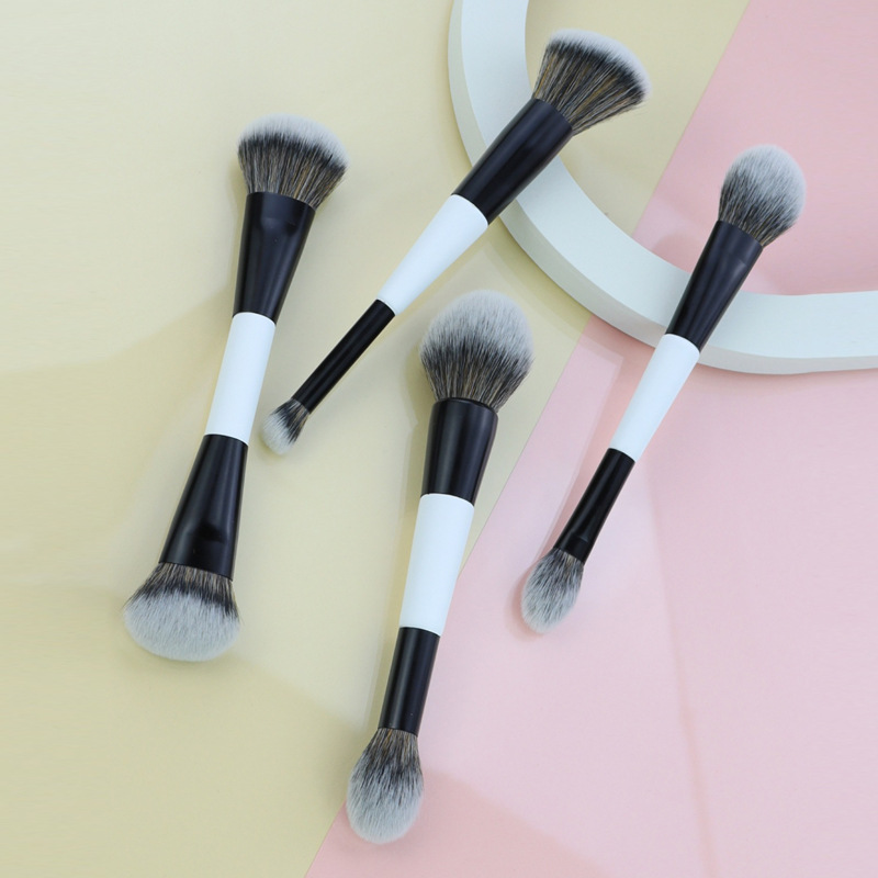 跨境热卖4支双头黑白化妆刷粉底刷散粉刷腮红刷高光刷美妆工具