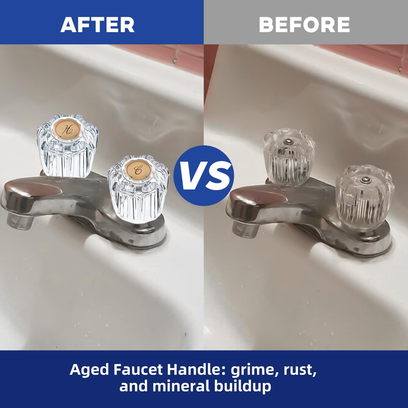 5--手柄尺寸:每个水龙头手柄更换件的底部直径约为4.3厘米,高度约为5.2厘米,内孔直径约为0.8厘米,螺丝长度约为1.5厘米,使这些手柄适用于厨房和卫生间的水龙头。