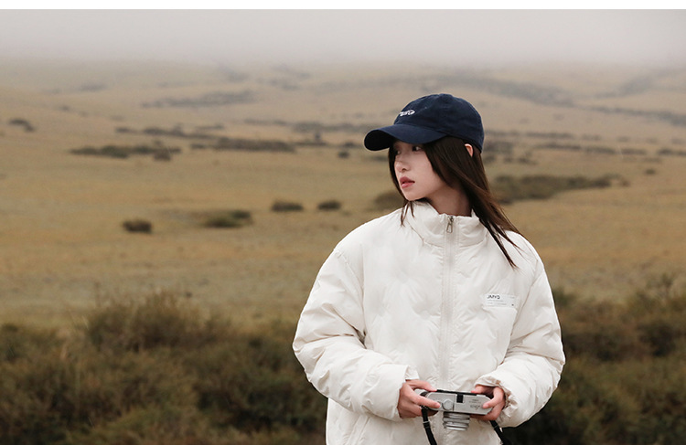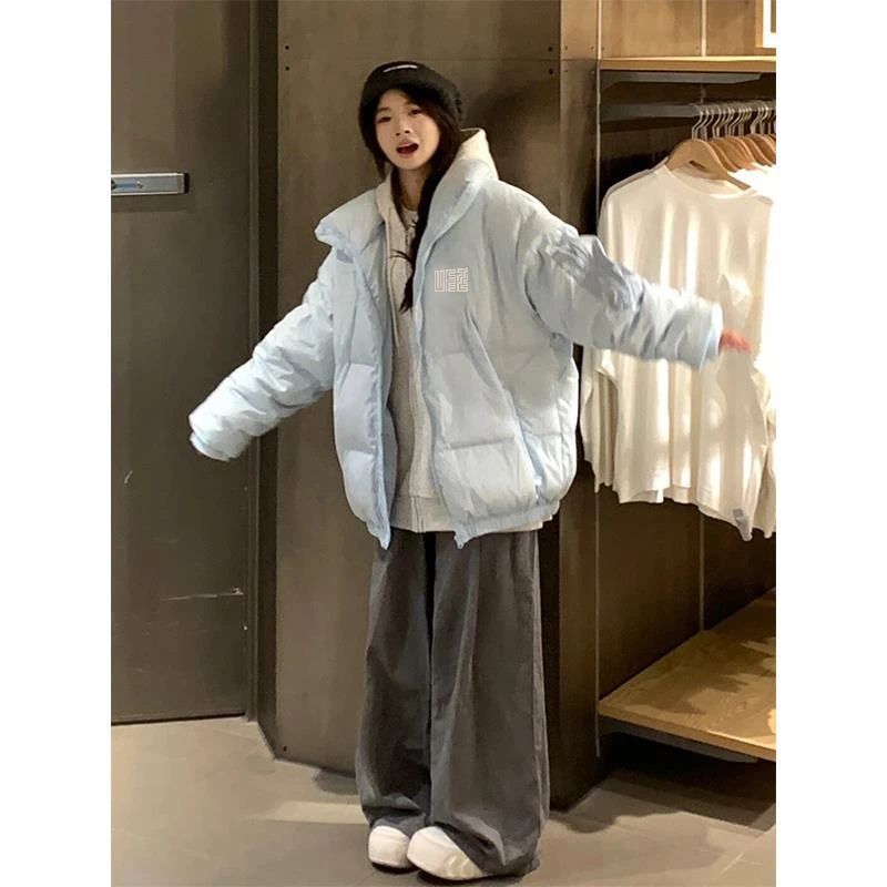 奶蓝色压印菱格棉服女冬季外套2025年新款国潮牌加厚棉衣棉袄学生