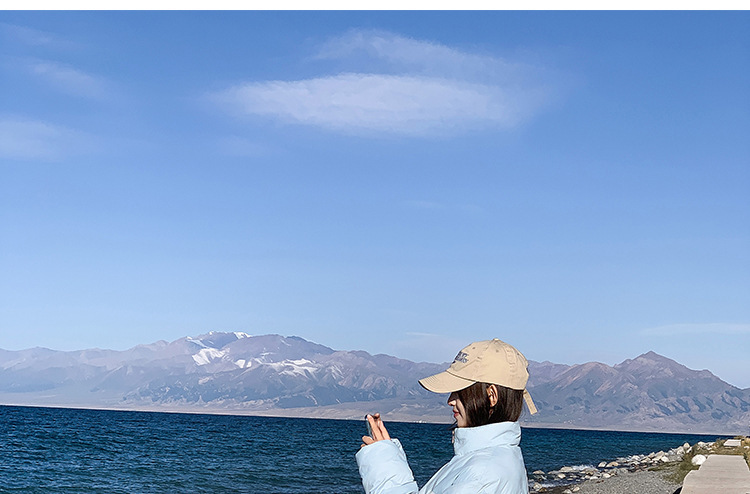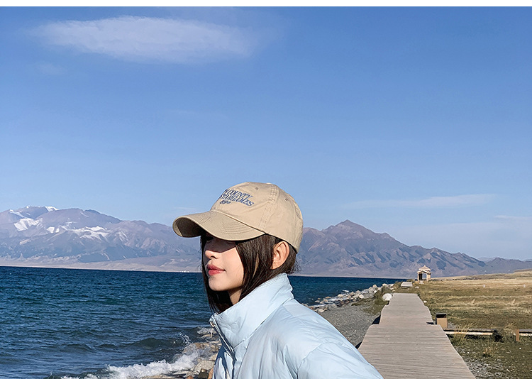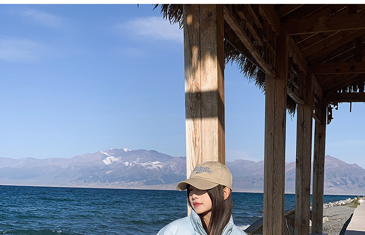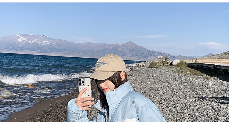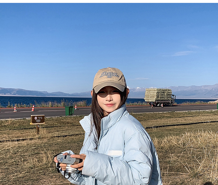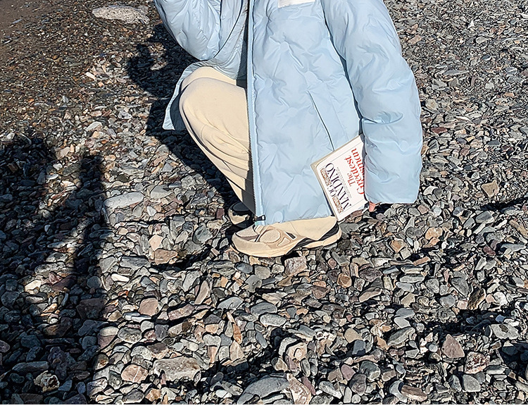 学院風保温空色の帽子付きパン服女性冬の新型厚手アルファベット刺繍綿服コート