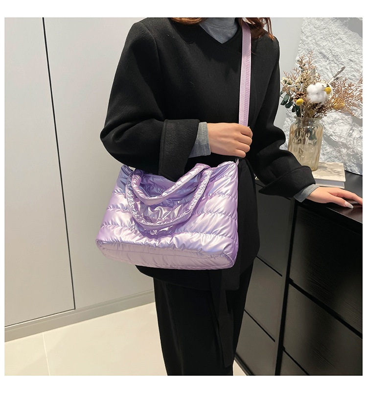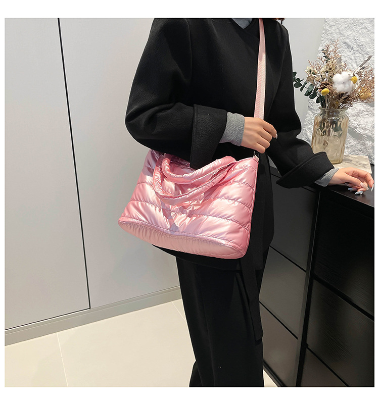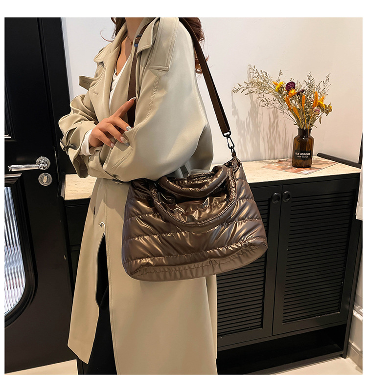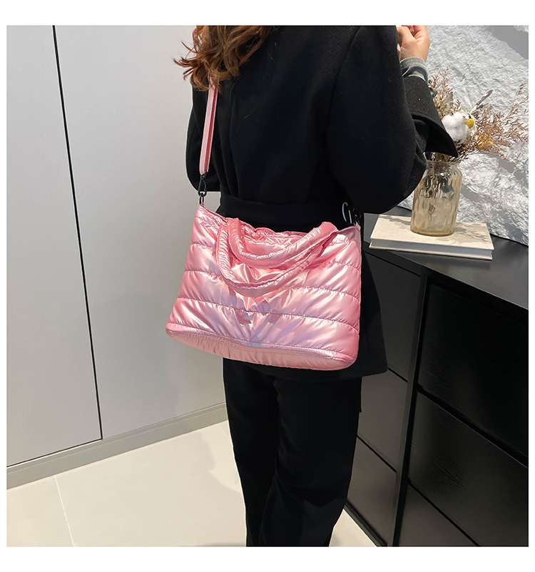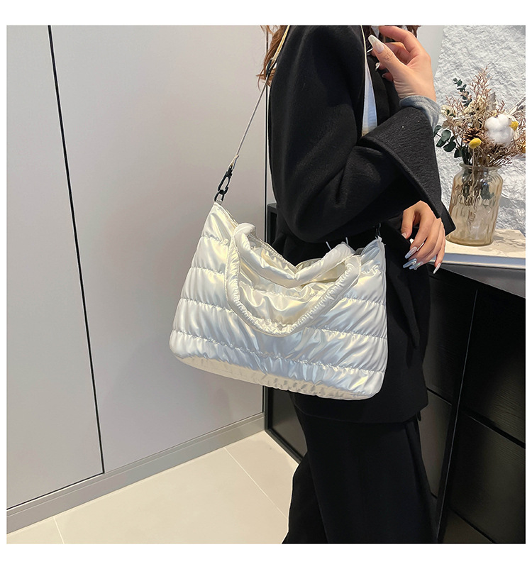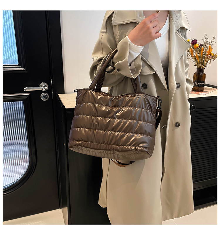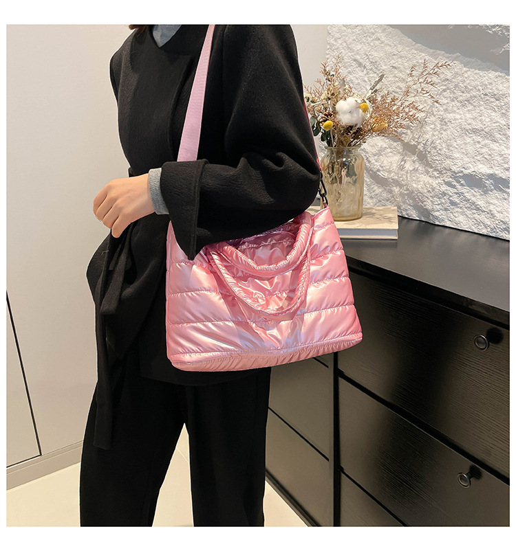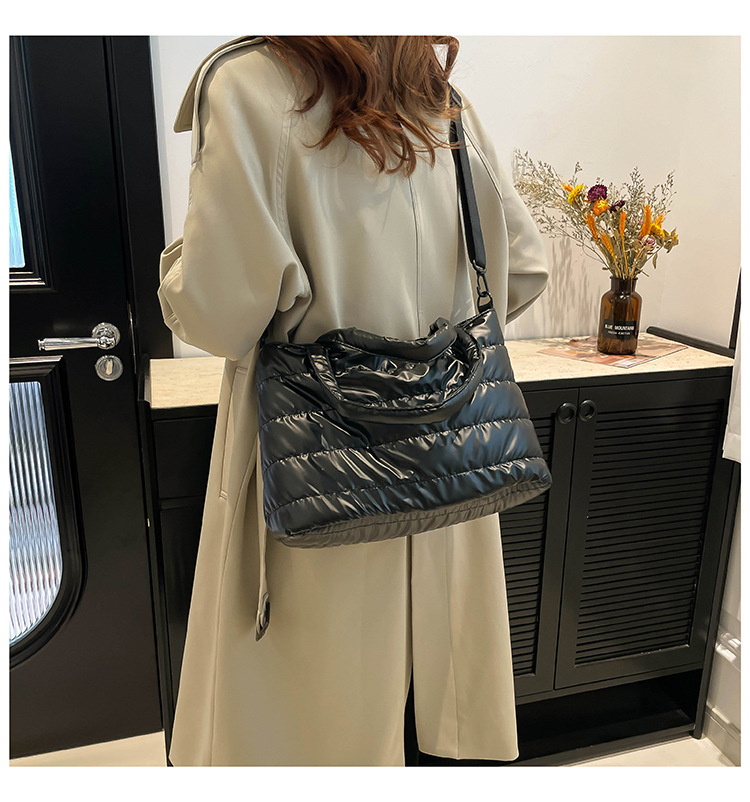 亮面珠光托特包新款休闲大容量单肩斜挎包高级感女包羽绒棉服包