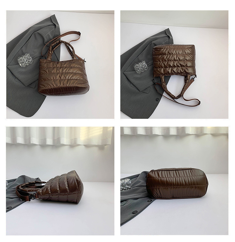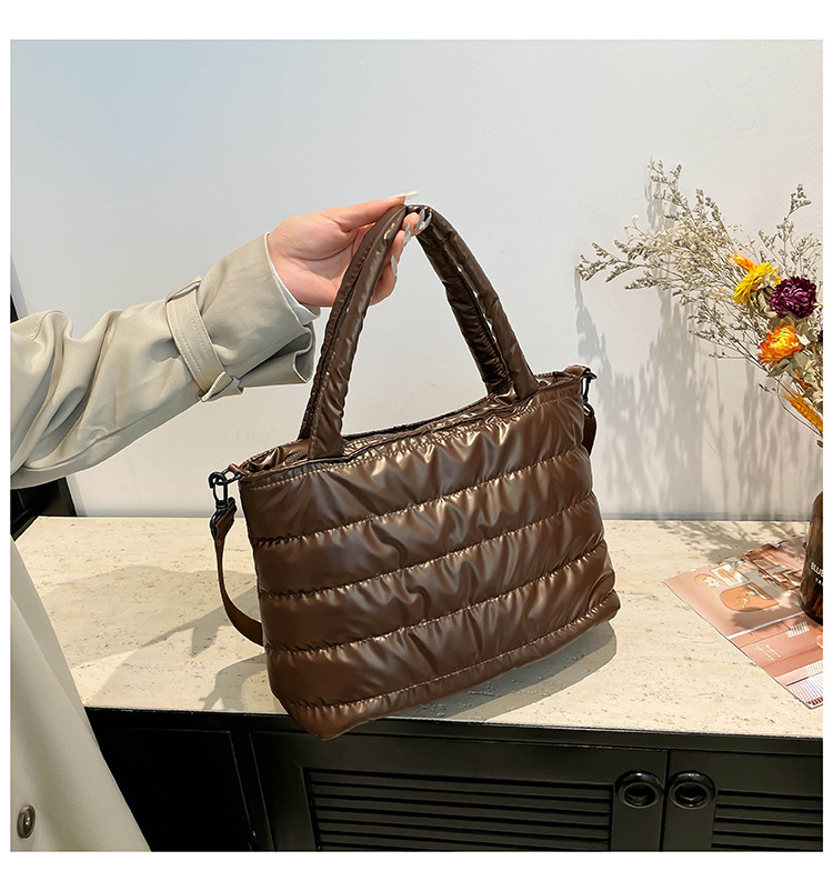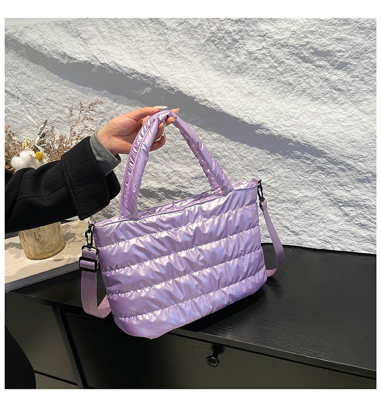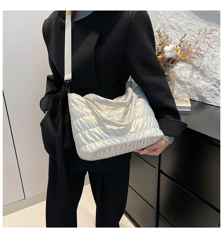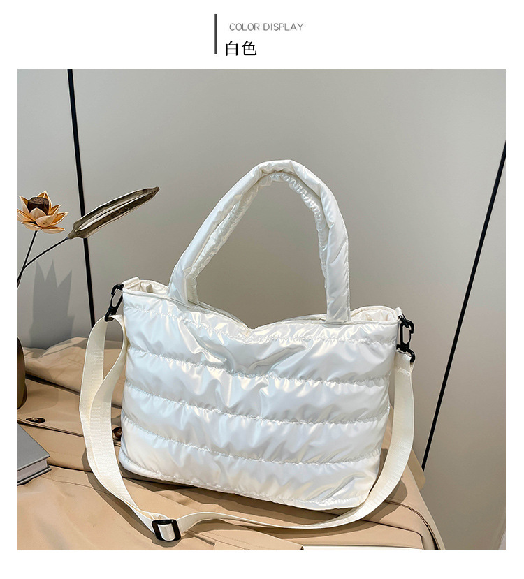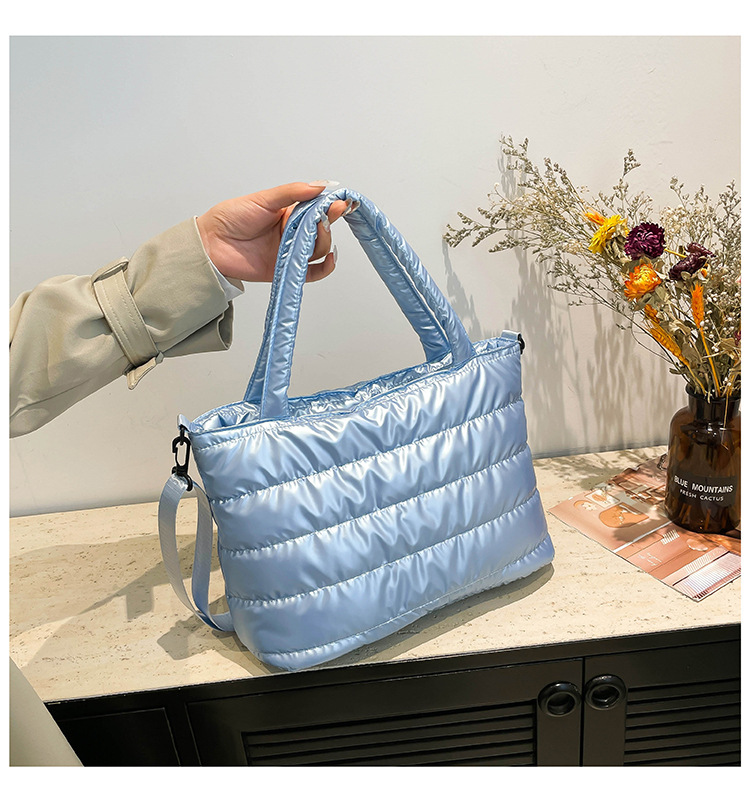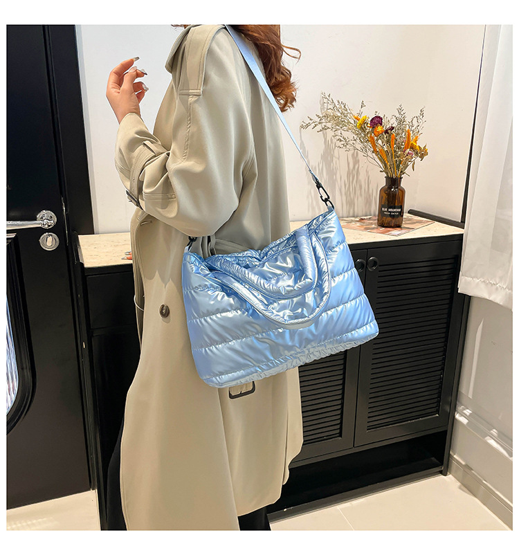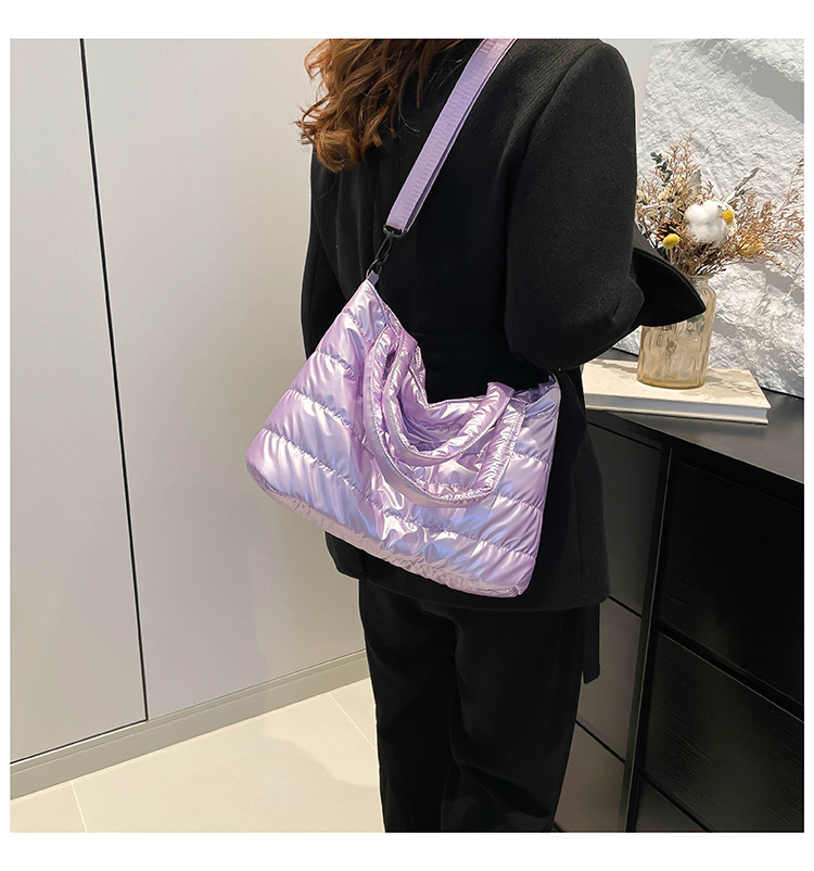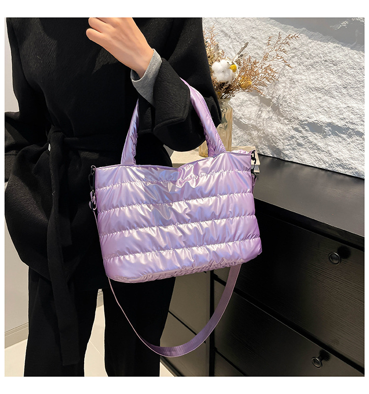 亮面珠光托特包新款休闲大容量单肩斜挎包高级感女包羽绒棉服包