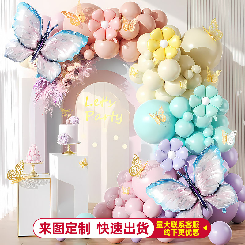 蝴蝶结卡通网红气球链场景布置派对气球装饰品生日仪式感背景墙