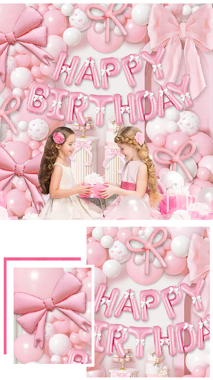 跨境新款彩色亚光蝴蝶结气球铝箔ins风派对背景装饰儿童生日布置