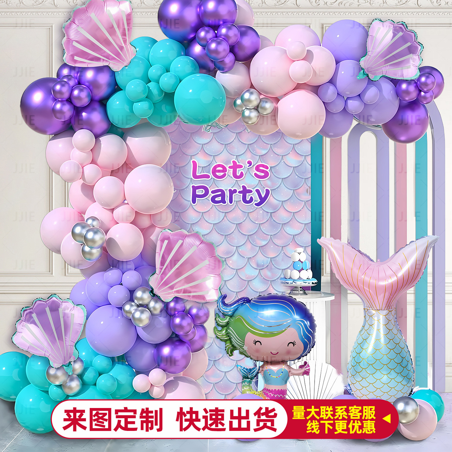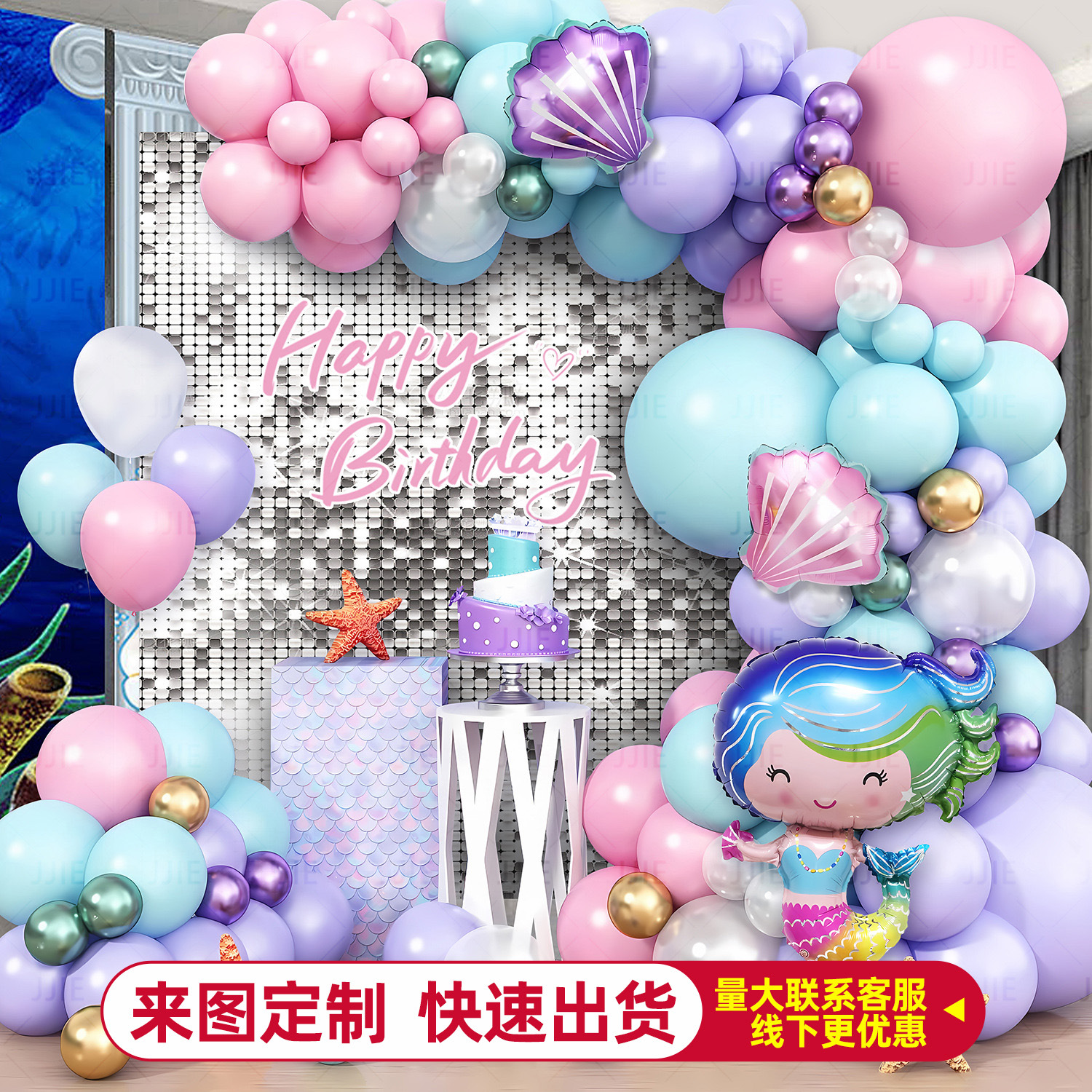 アマゾン人魚風船チェーン人魚の尾風船セット海洋テーマパーティー子供用装飾飾り