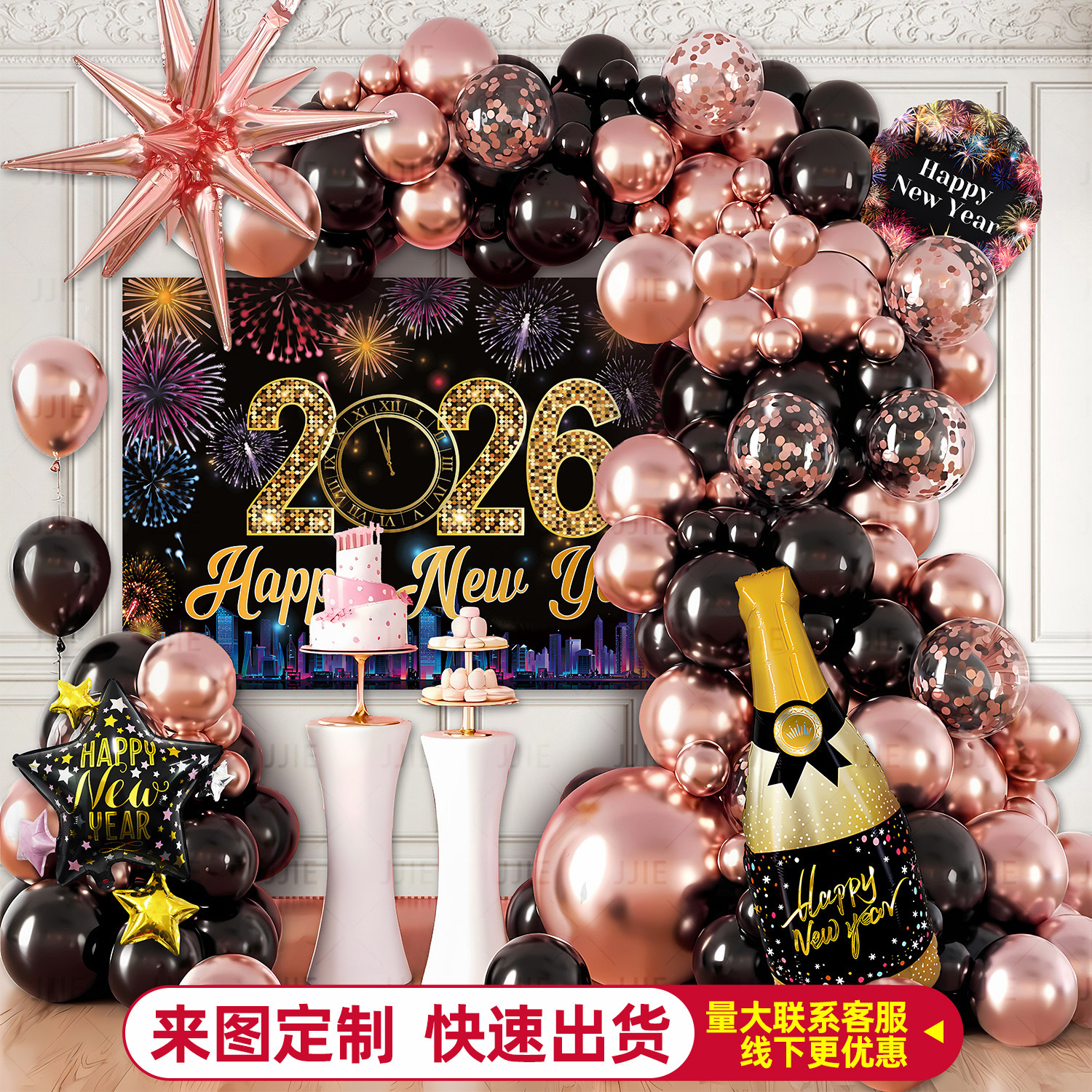 亚马逊2026新年气球跨境套装Happy New Year节日派对家庭聚会气球
