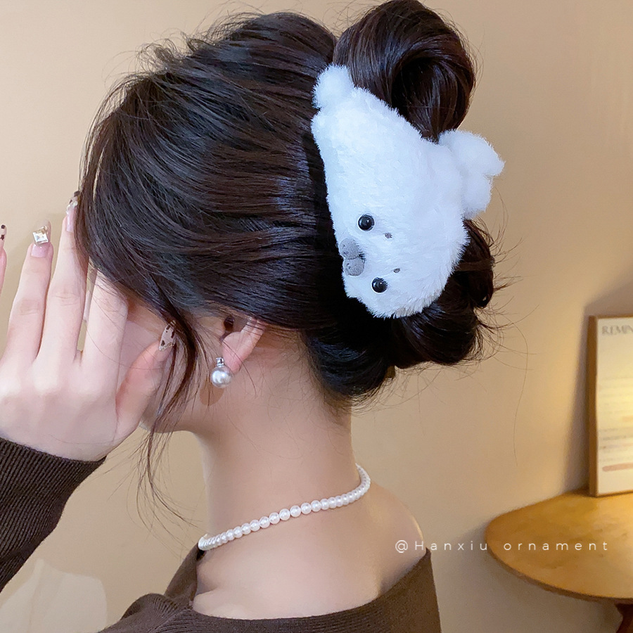 秋冬海豹毛绒发夹抓夹可爱气质后脑勺盘发鲨鱼夹设计感小众发饰女